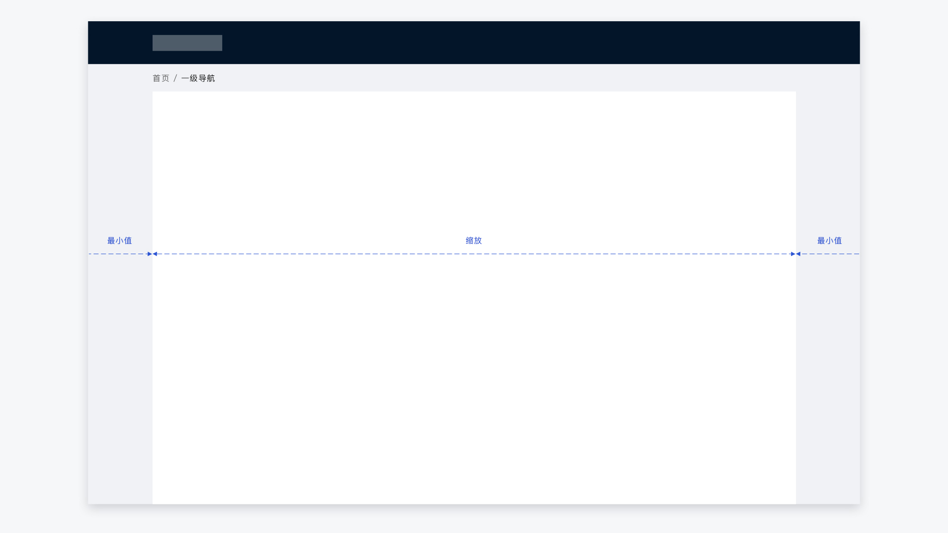 水平导航布局,适配方式是:两边留白区域设定最小值,当留白区域达到最小值时对中间主要内容区进行动态缩放。