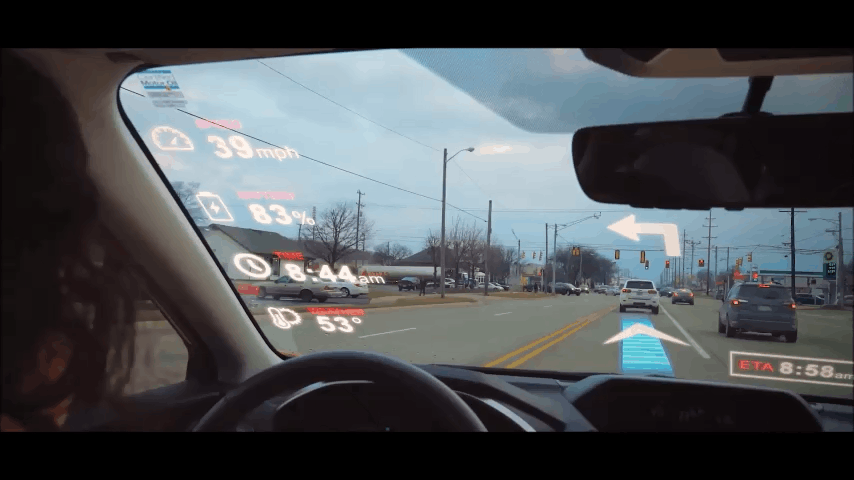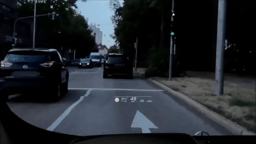 AR HUD技术是安全驾驶的一项重要的先进辅助设备,它可以实时为我们提供车道偏离、道路施工、前车预警和主动驾驶员辅助系统等信息,通过与周围信息相融合,以直接投影到前方。在道路突发状况,如,突然停车时,汽车需要结合声音和符号闪烁等及时作出提醒,以实现安全驾驶。