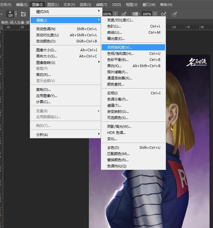 点击PS菜单中的“图像——调整——自然饱和度”(快捷键Alt+J+V)