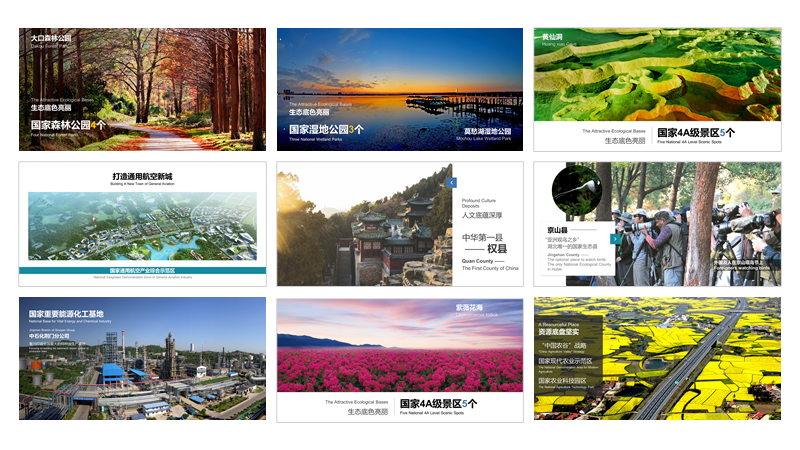 政府做城市发展规划汇报时,可以利用城市的图片做全图型的版式,利于城市形象的文化、历史、面貌的传递。通过视觉冲击进一步提升观众的记忆点!