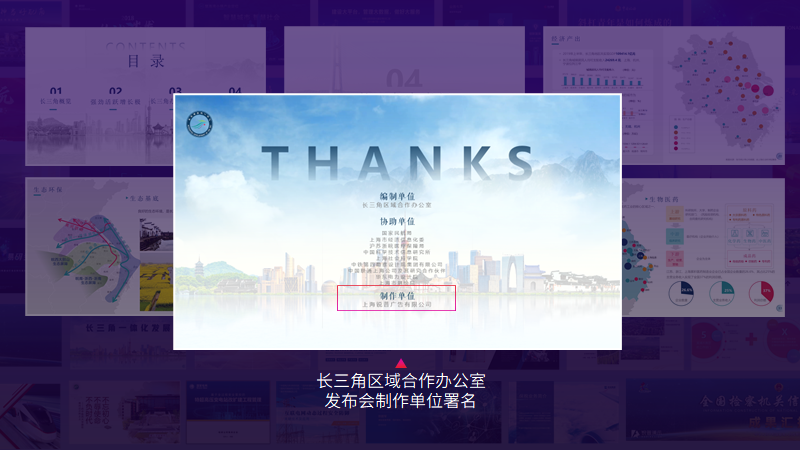 2019年,锐普为长三角区域办公室制作长三角工作汇报PPT,在最后感谢页面,也有机会和其他政府单位一起被感谢,这让我们也倍感骄傲。