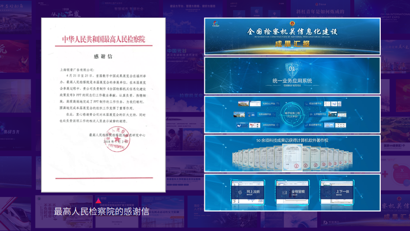 2018年,锐普为中华人民共和国最高人民检察院制作了汇报PPT,博得最高级领导的青睐,收到了最高检发来的感谢信,我们当时都特别兴奋,这是对锐普最大的肯定。