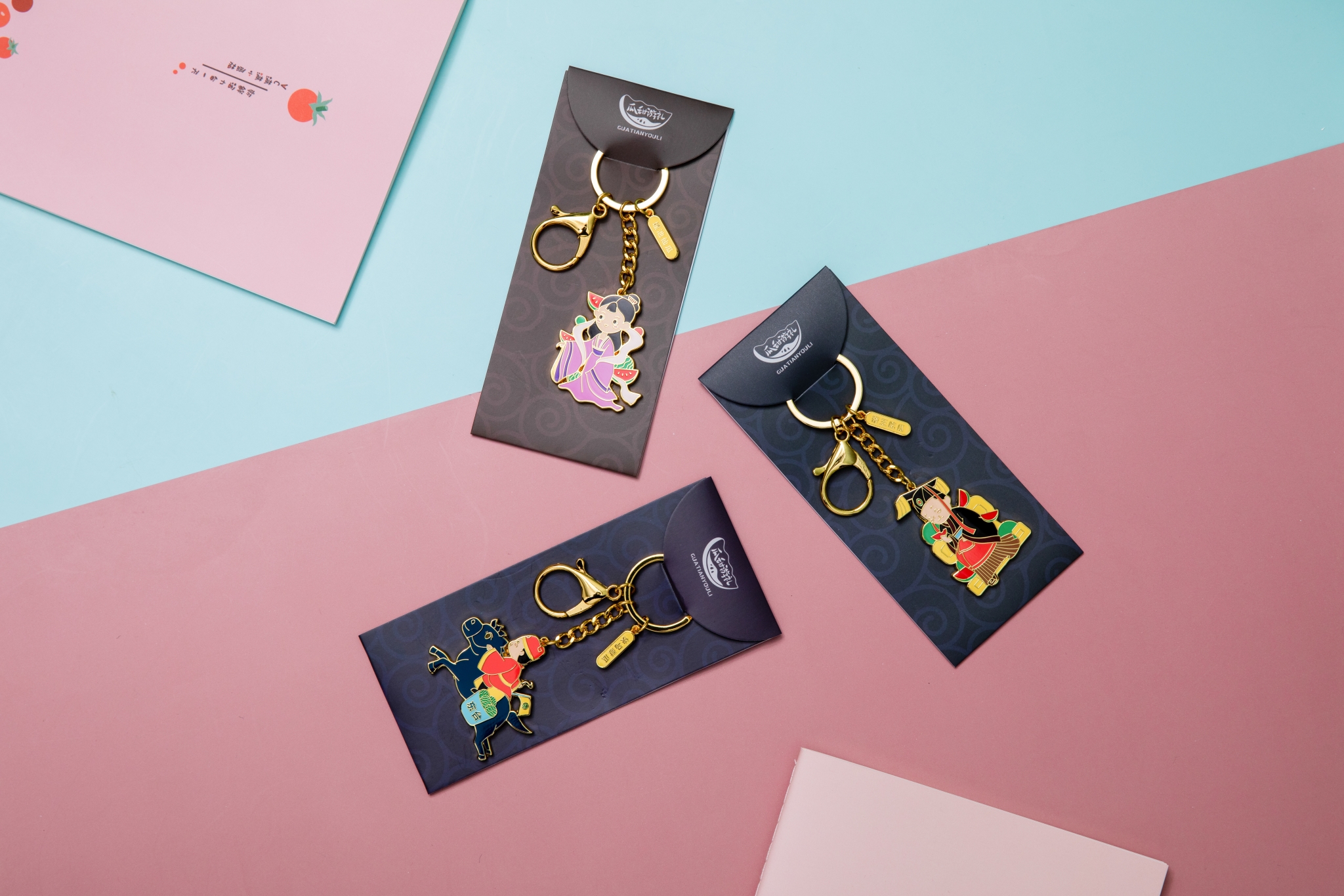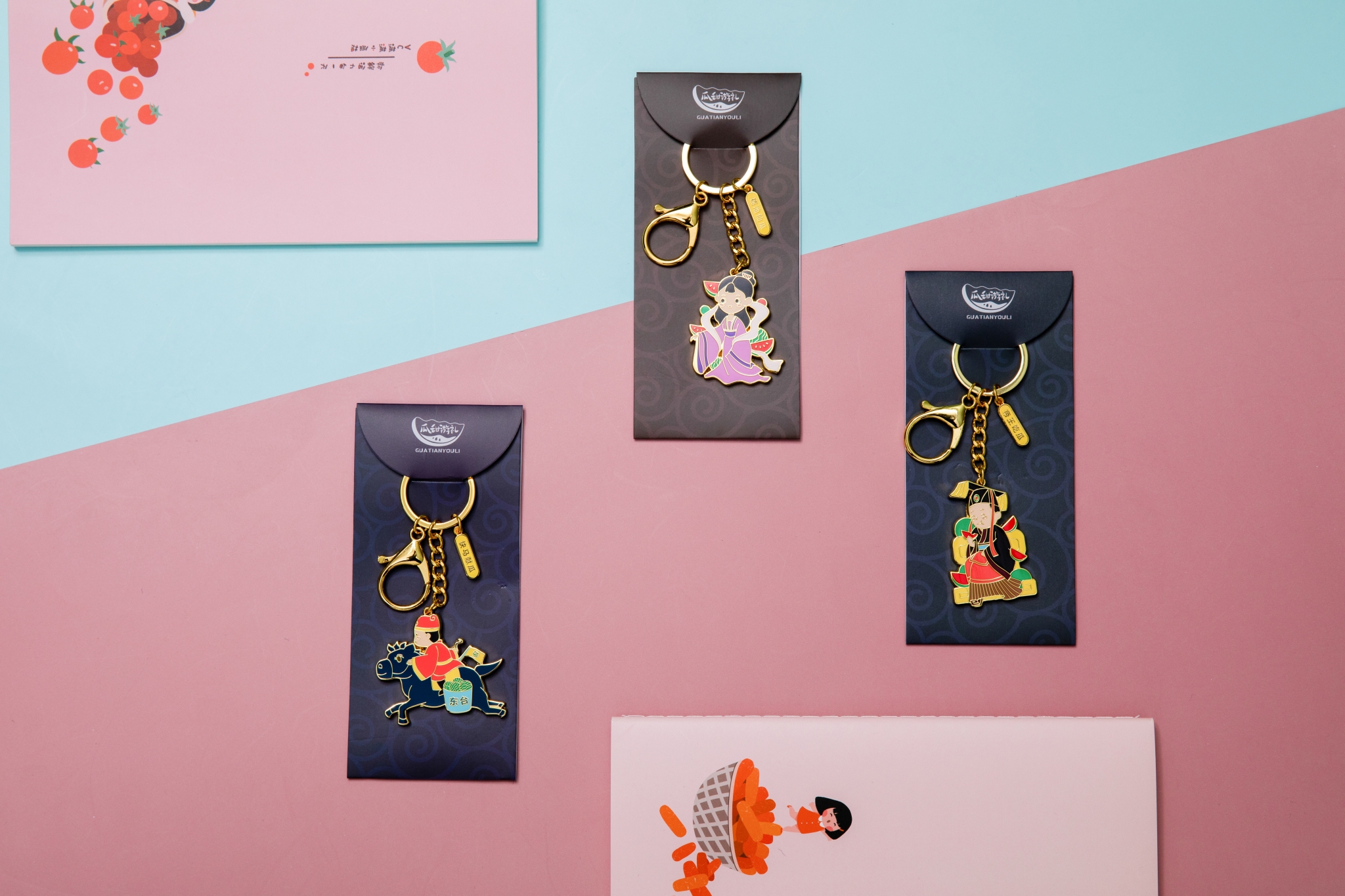 围绕西瓜的风俗与传说进行再创作,打造了这几款精美别致的钥匙扣。