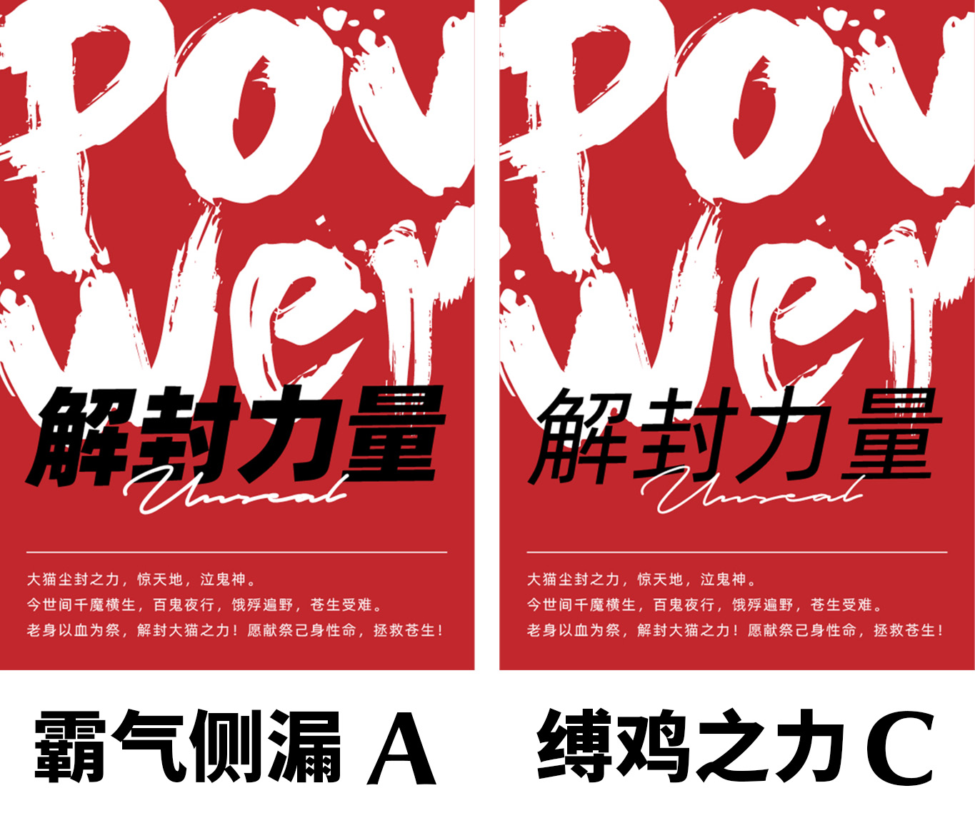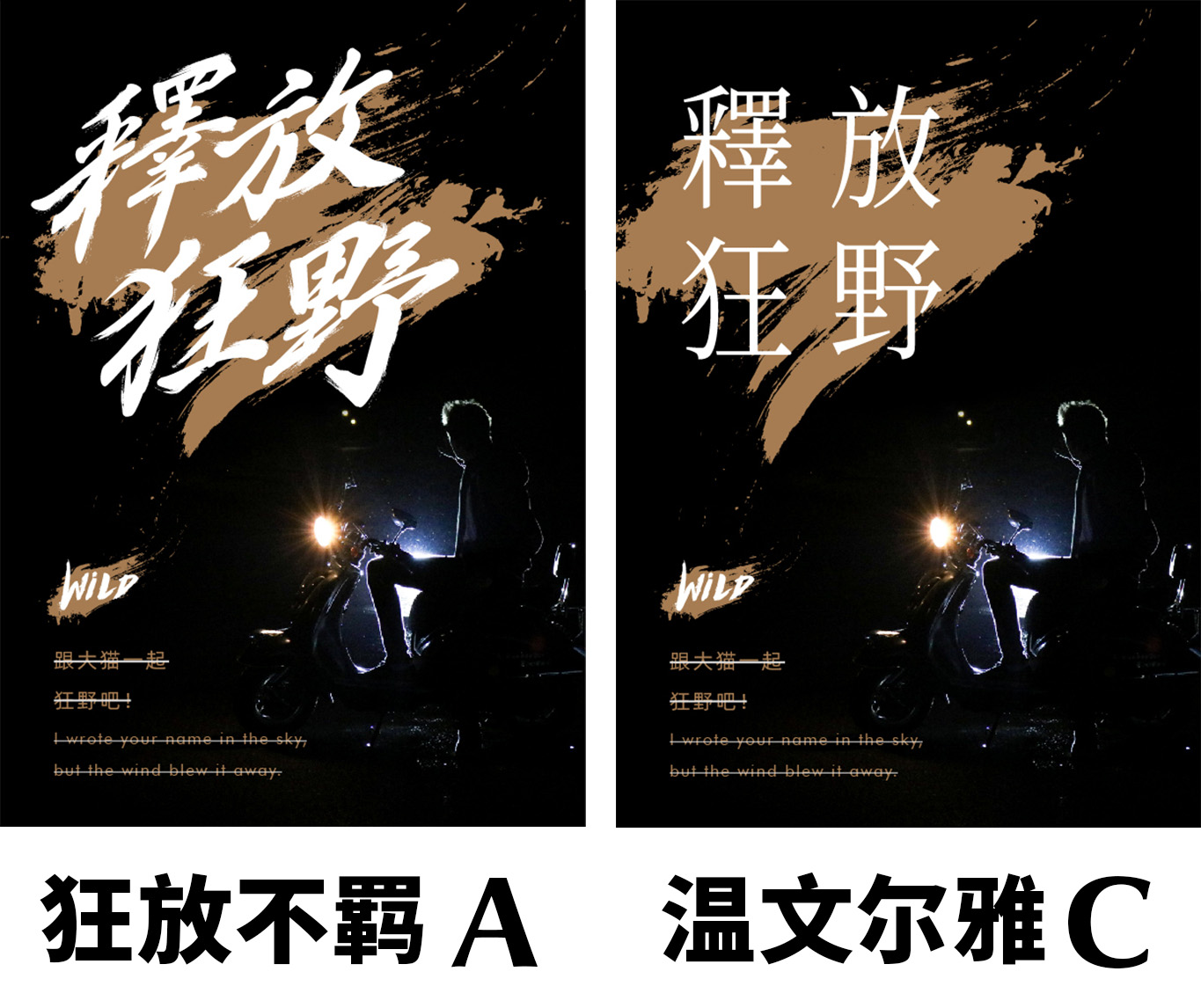 「狂放不羁A」用的是奔放的书法字,比较有气势,狂野感就强!