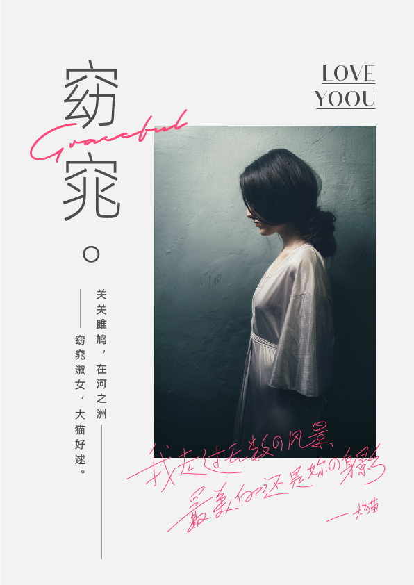「A」用的宋体字,且比较高挑优雅,就契合“窈窕淑女”的气质。