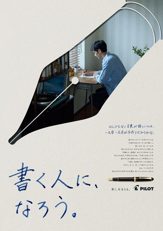 百乐笔的海报,标题直接是用百乐笔写出来的!