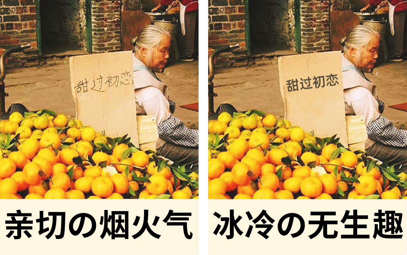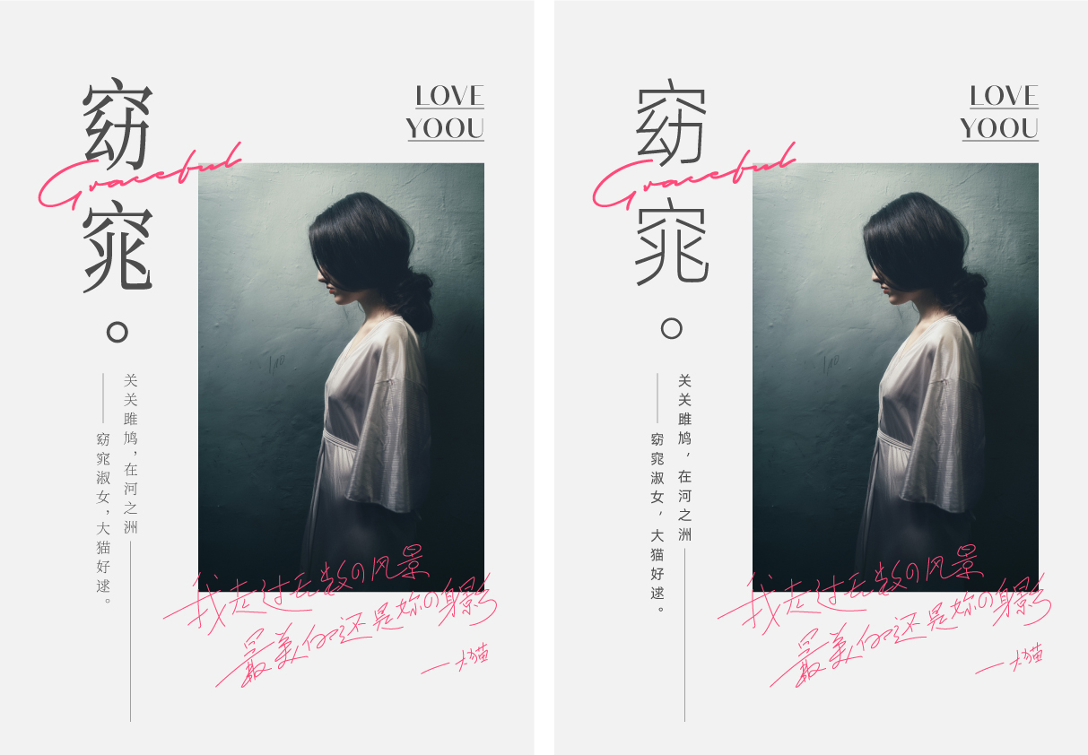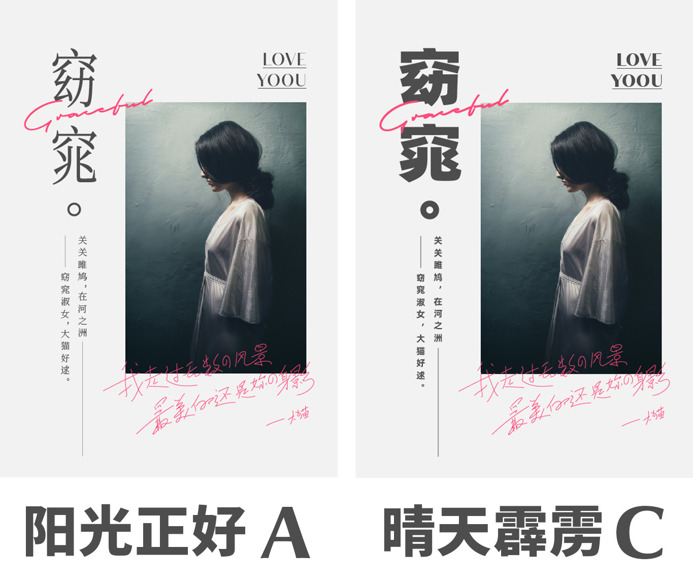 两个画面的主题是一样的,只是标题字体不同,传达的感觉就很不同~