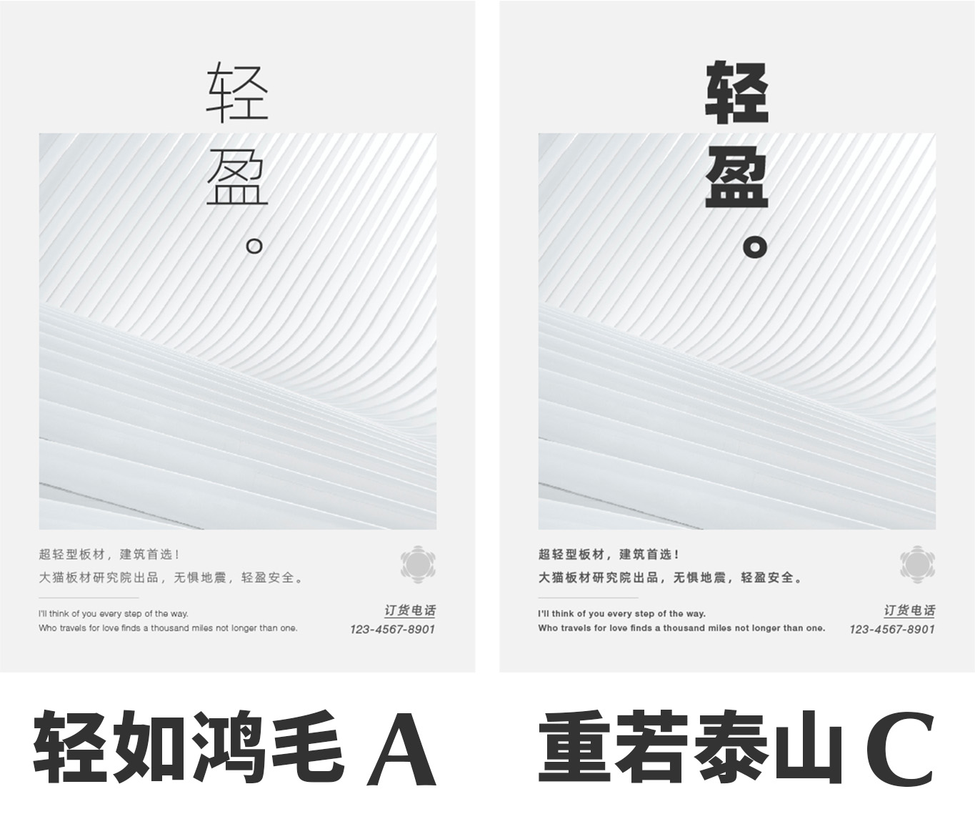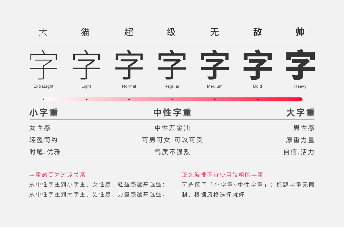 实际运用时,对照图表,选择契合项目气质感受的字重即可。![]()