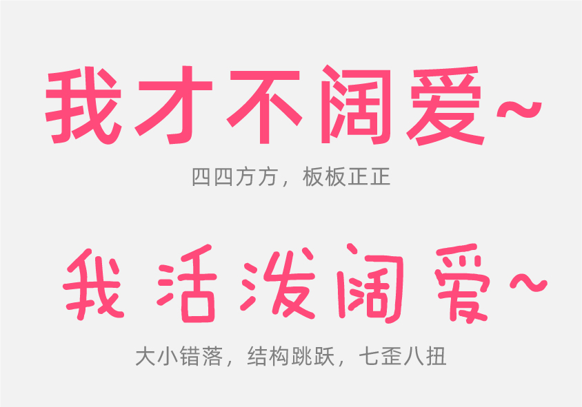 但结构是大小不同,高低跳跃的,而这正是卡通字的重要特征,