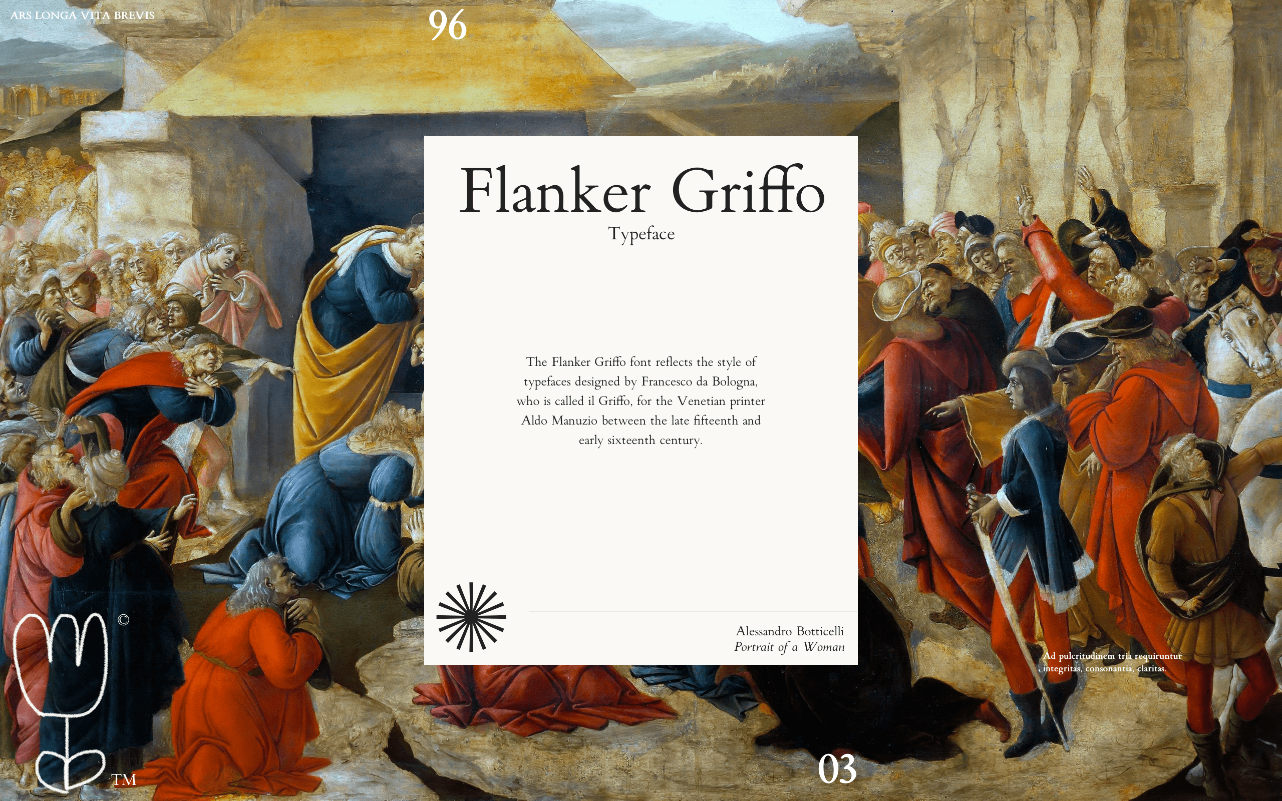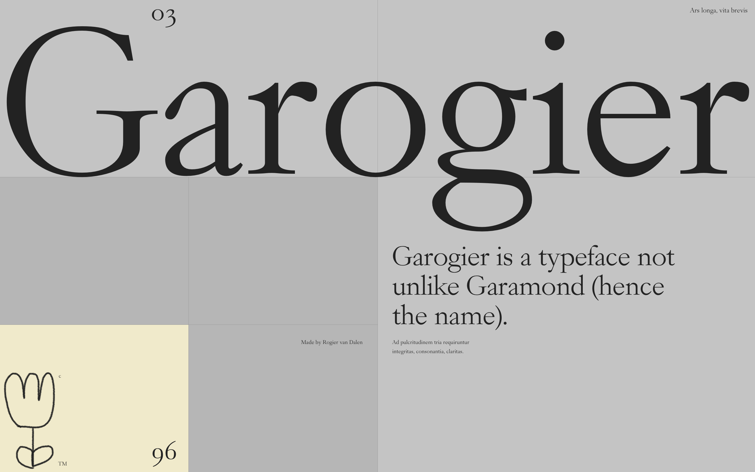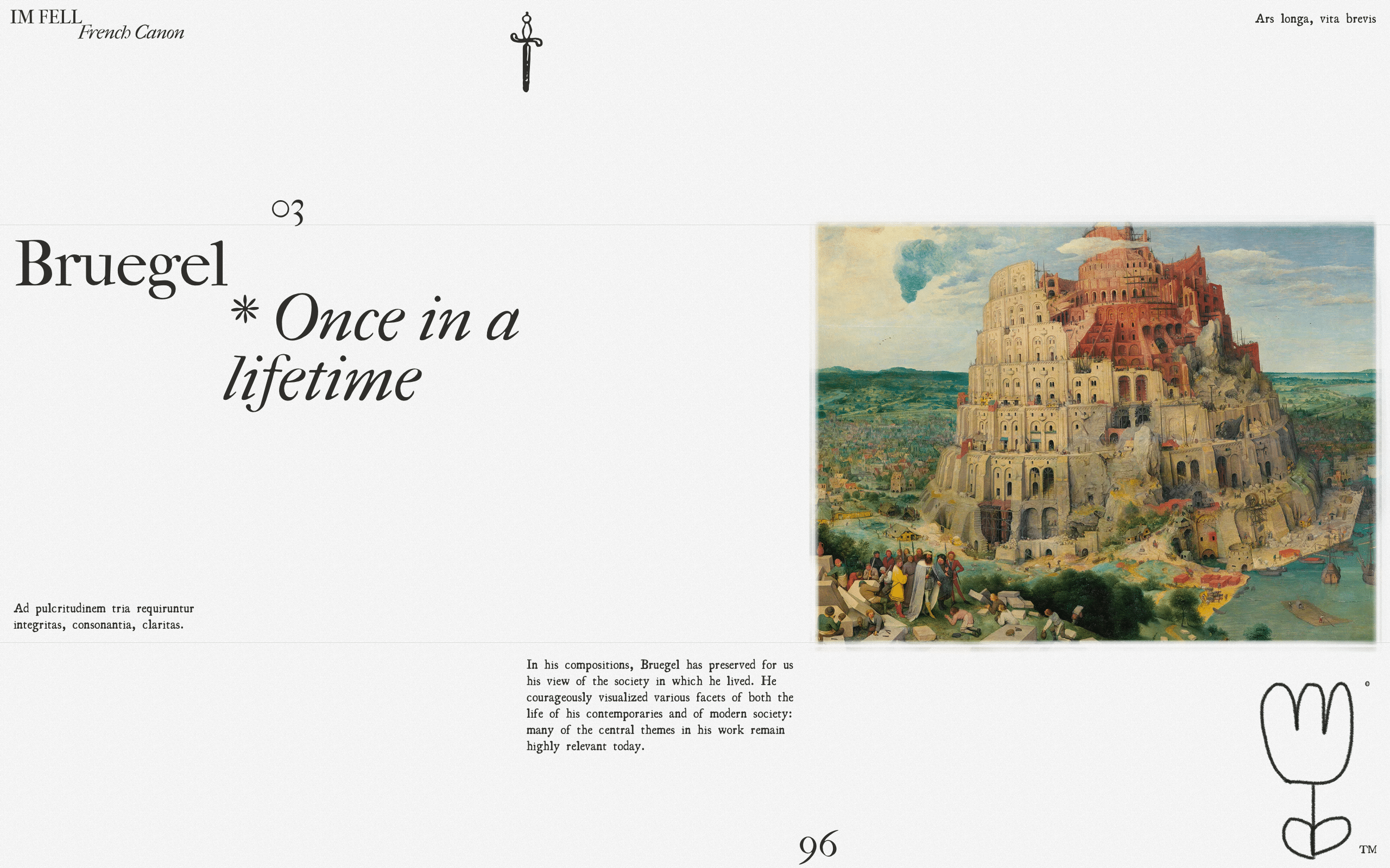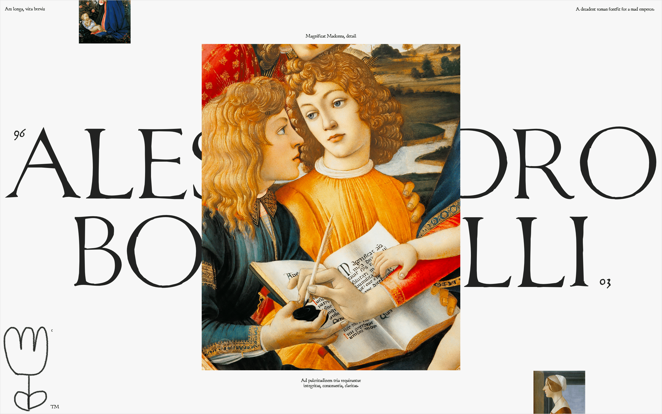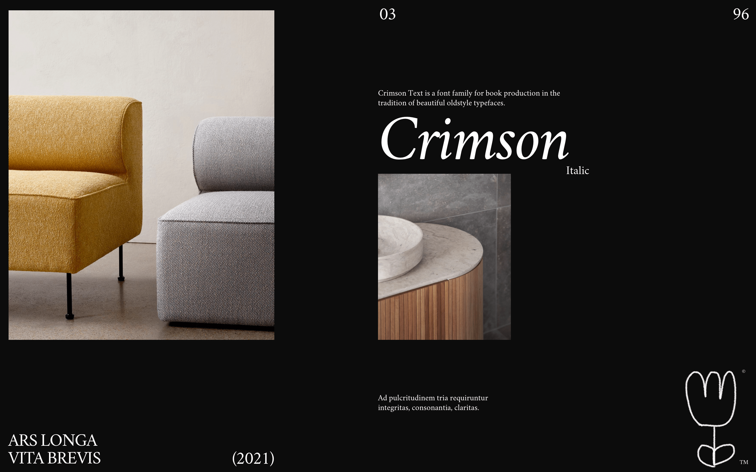 适用于大标题的衬线体,文本字体是 Archive Garamond;花花是图案字体 Kalocsai Flowers,Dafont上可下载