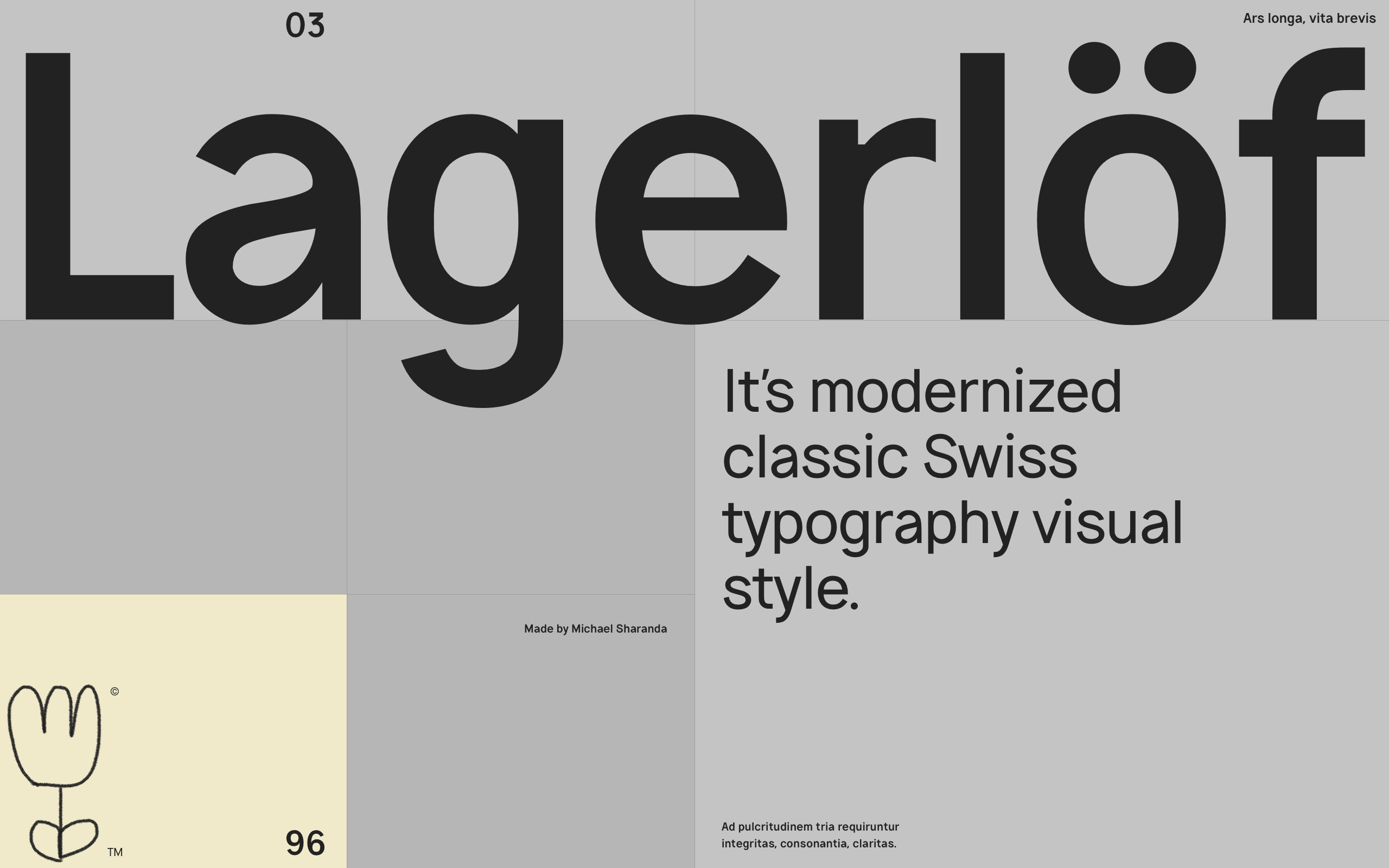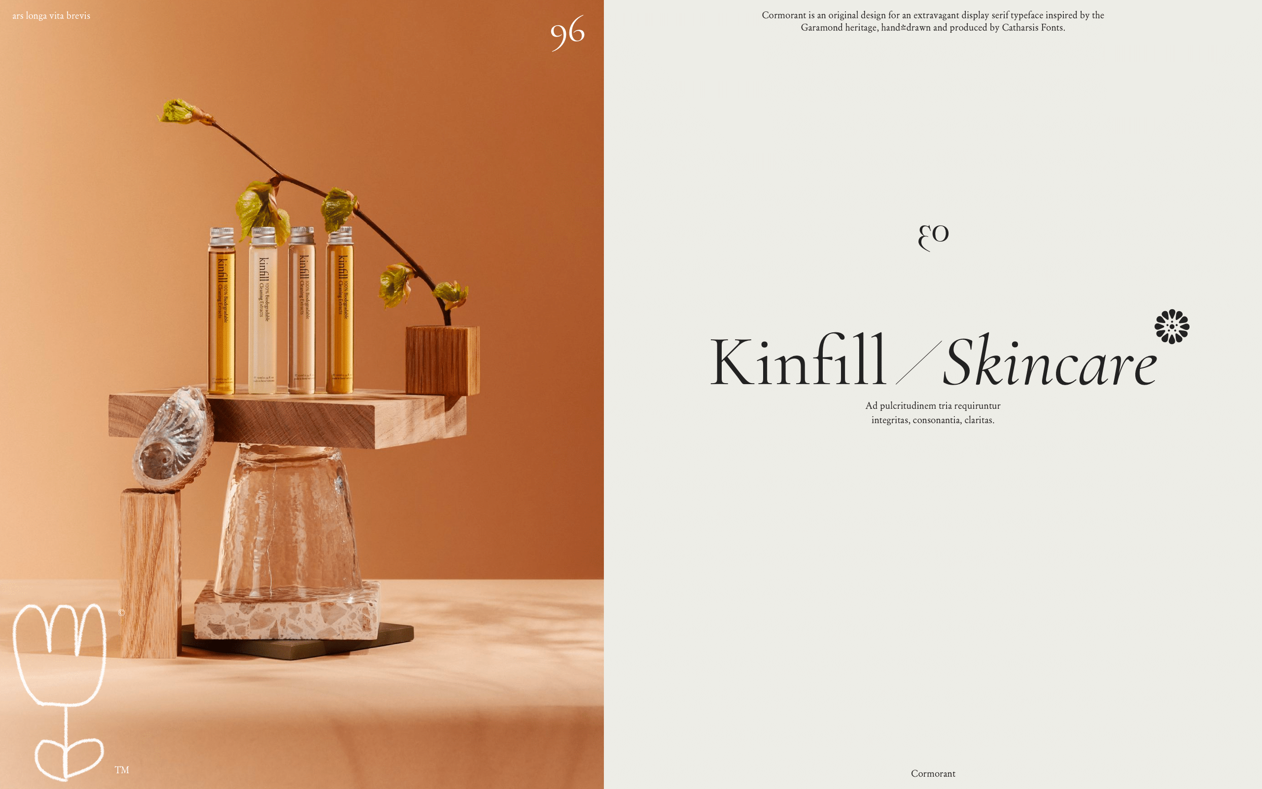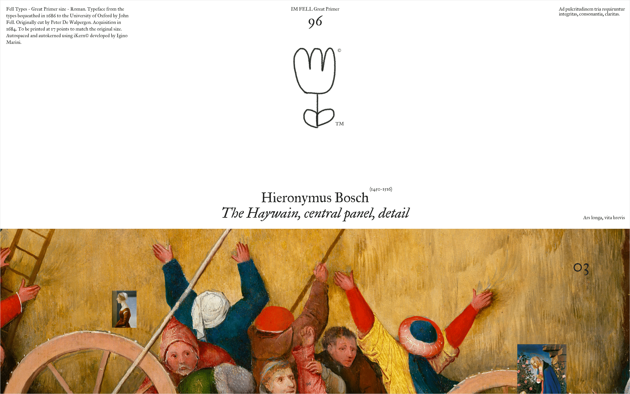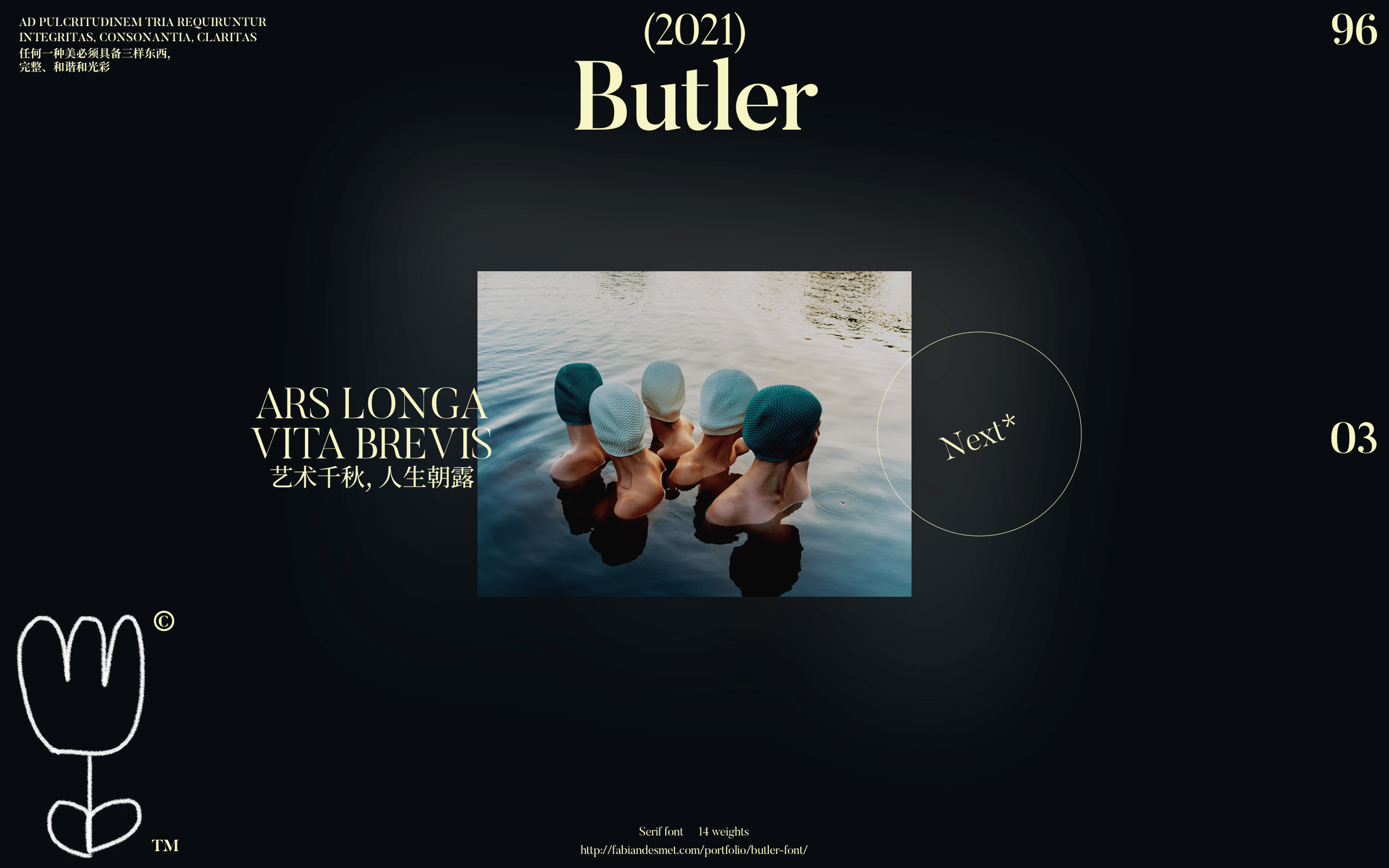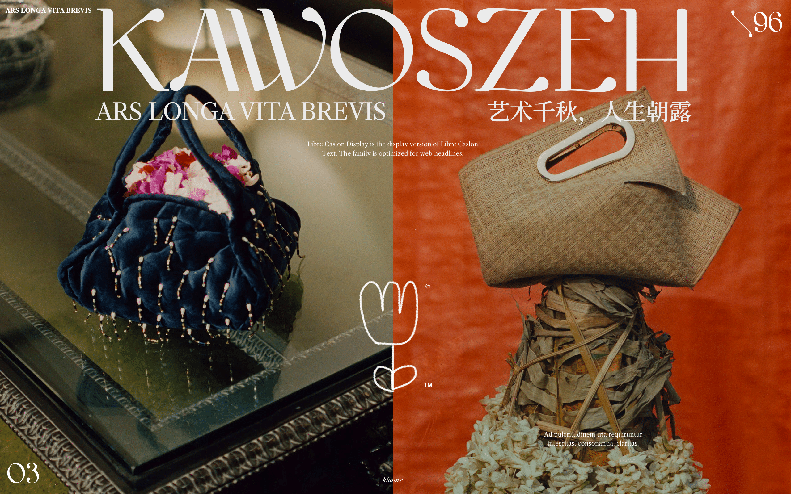 适用于大标题的衬线体,文本字体是 Archive Garamond;花花是图案字体 Kalocsai Flowers,Dafont上可下载