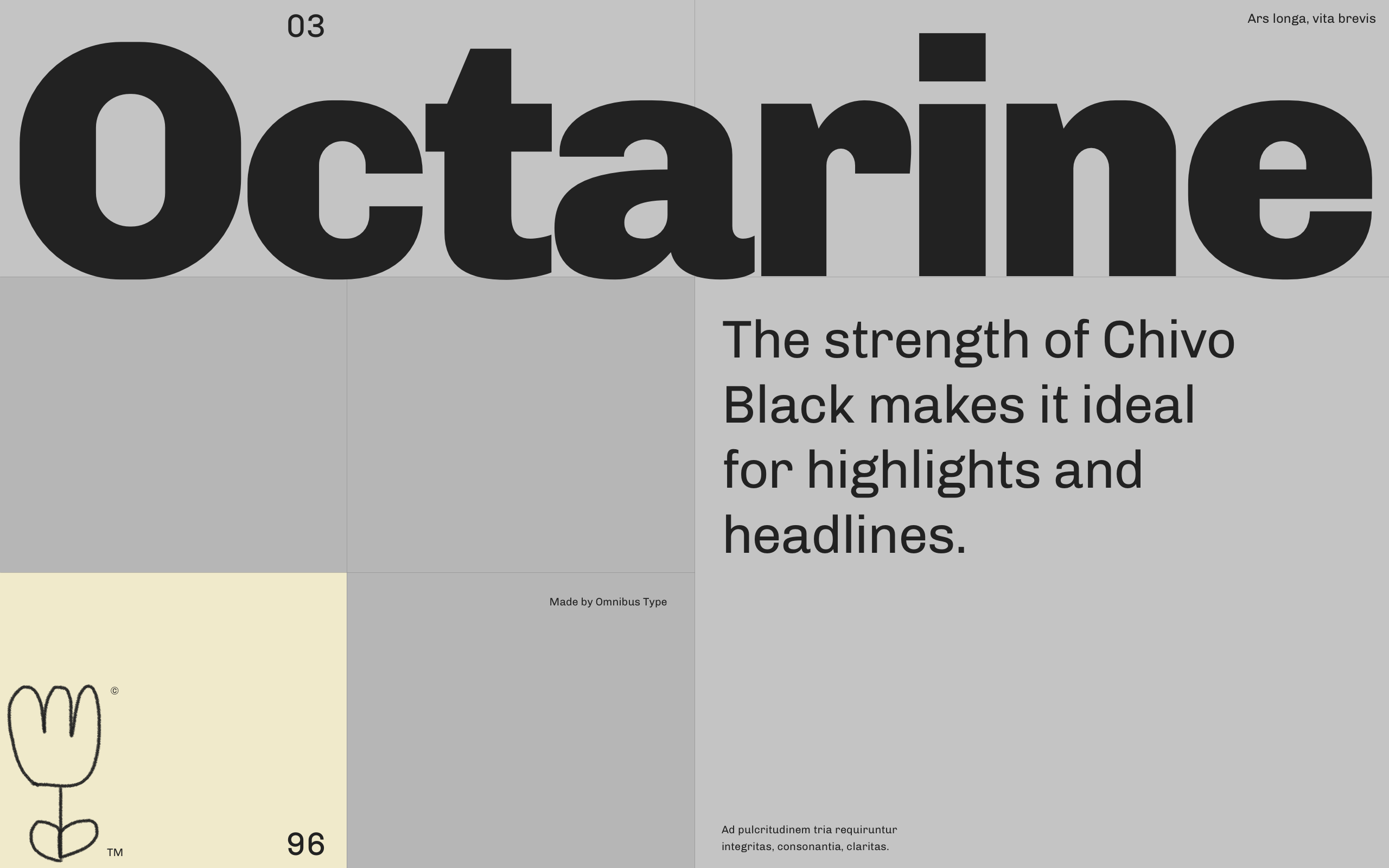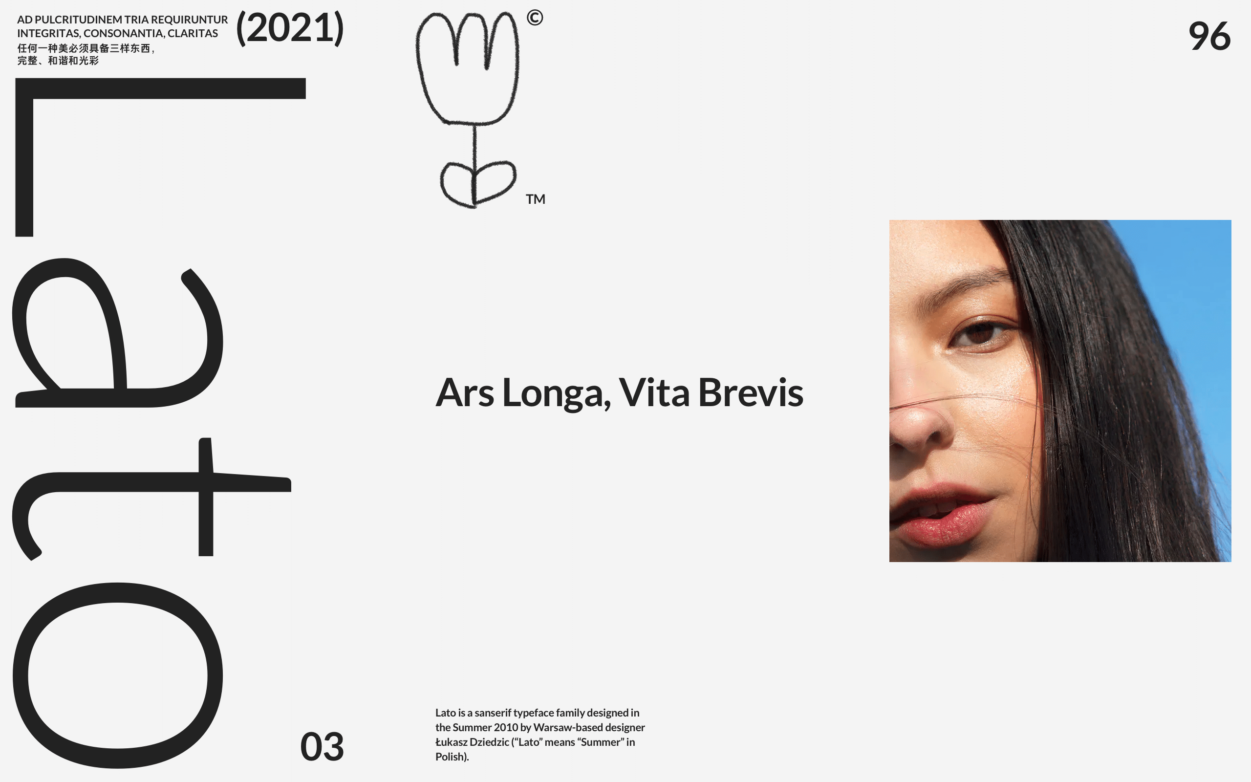 单个字重,干净简练,适用于大标题,较大的文本,搭配的小字部分是 Acronym