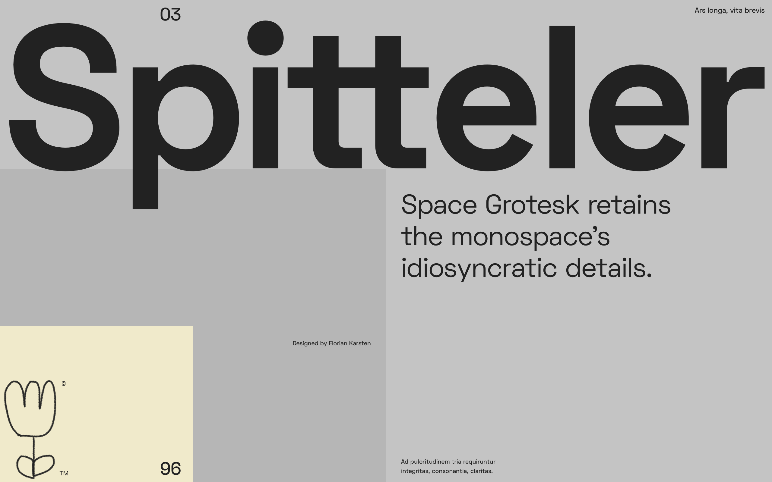 基于等宽字体 Space Mono(同免费可商用)设计的无衬线体,字重全