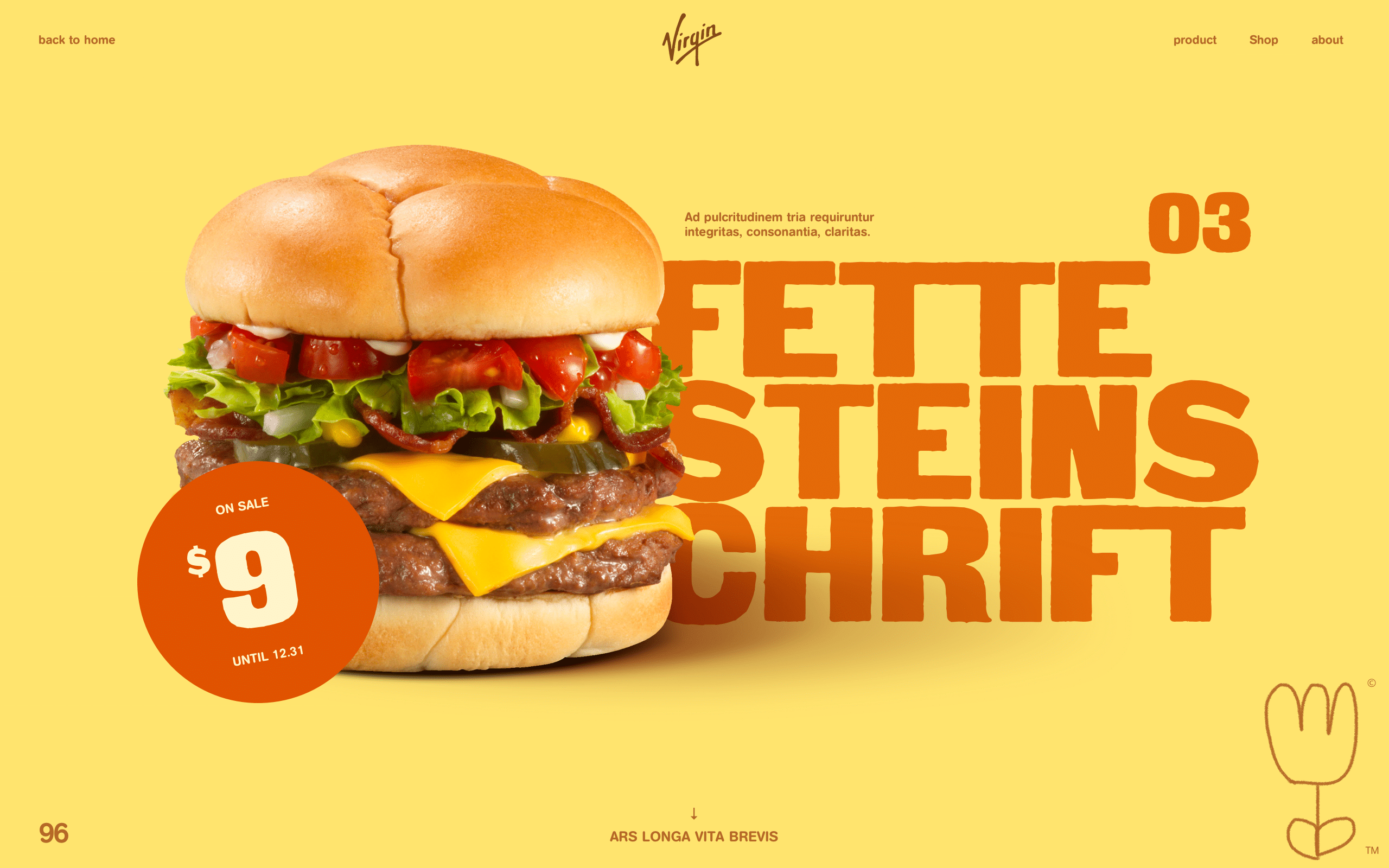 搭配的文本字体是 Craft Round;Virgin 标志是图案字体 the world's best logos,Dafont 上可下载