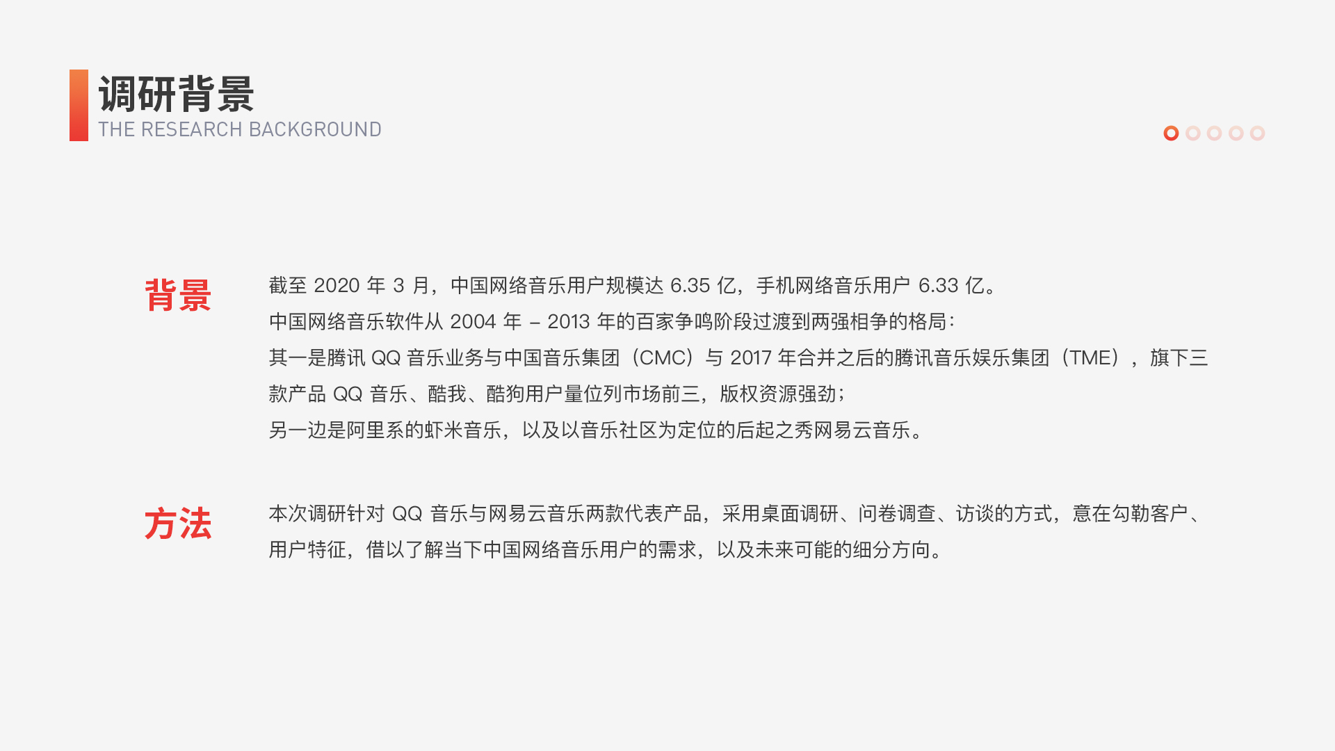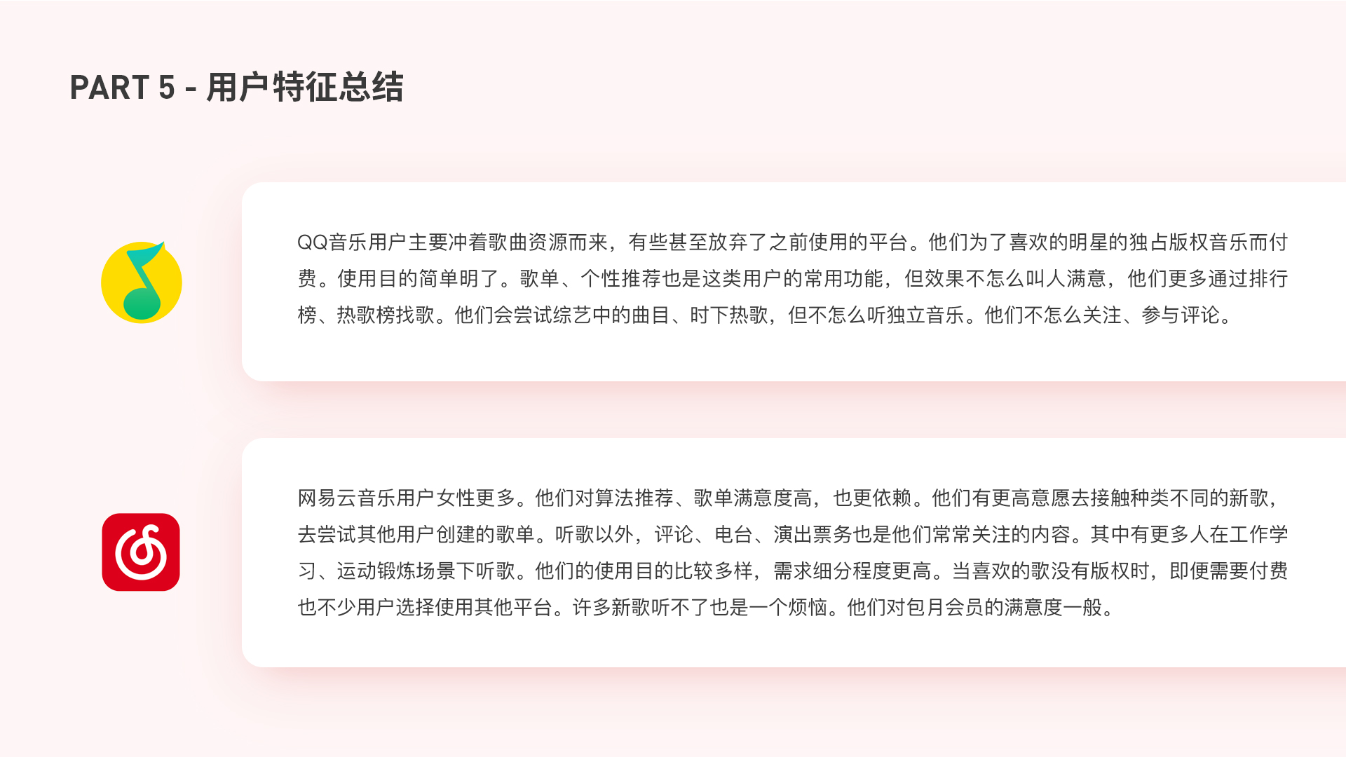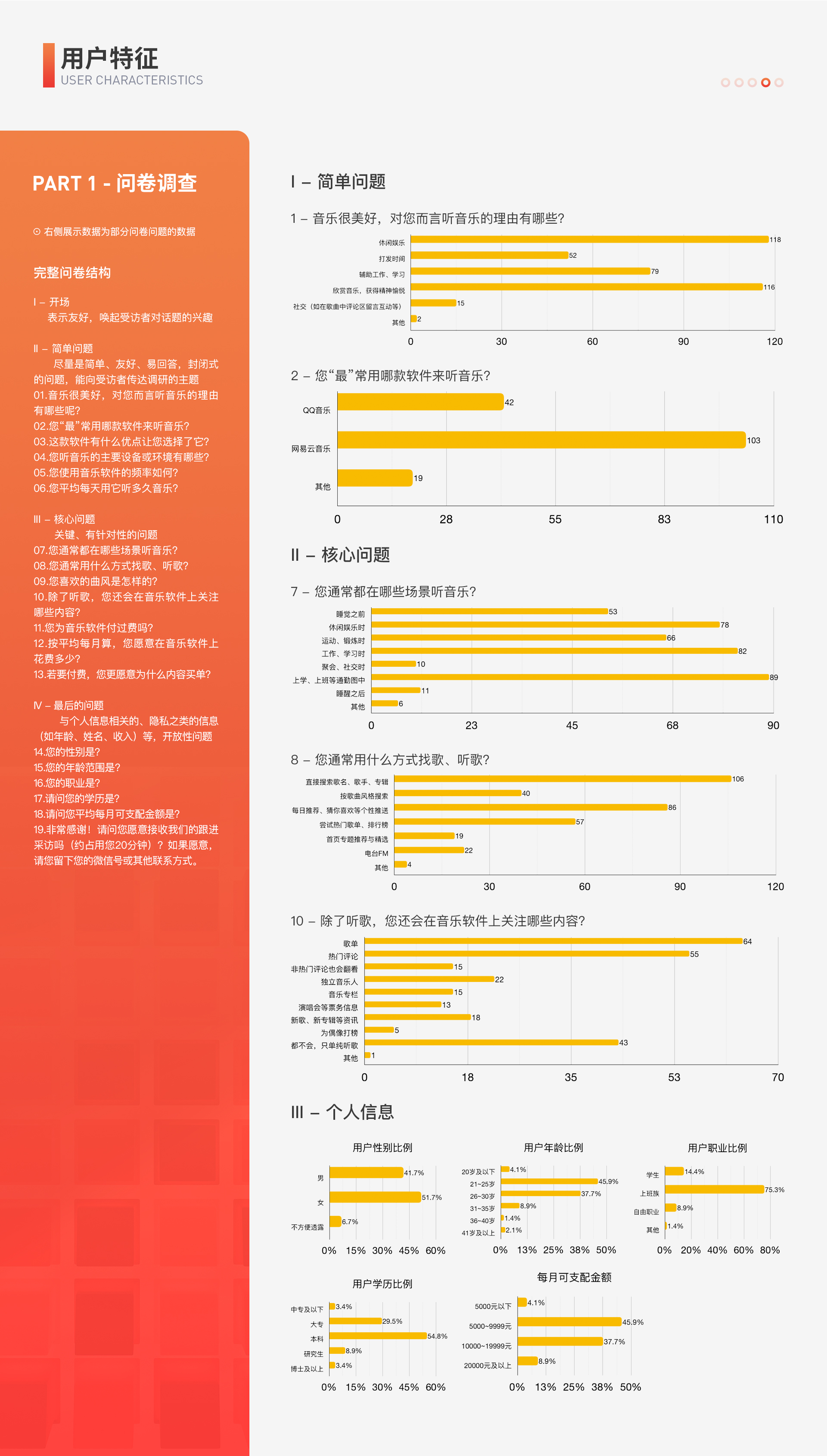 通过对网易云音乐和QQ音乐这两款产品进行市场分析、问卷调查、用户访谈,来了解这两款产品的产品特征和用户特征