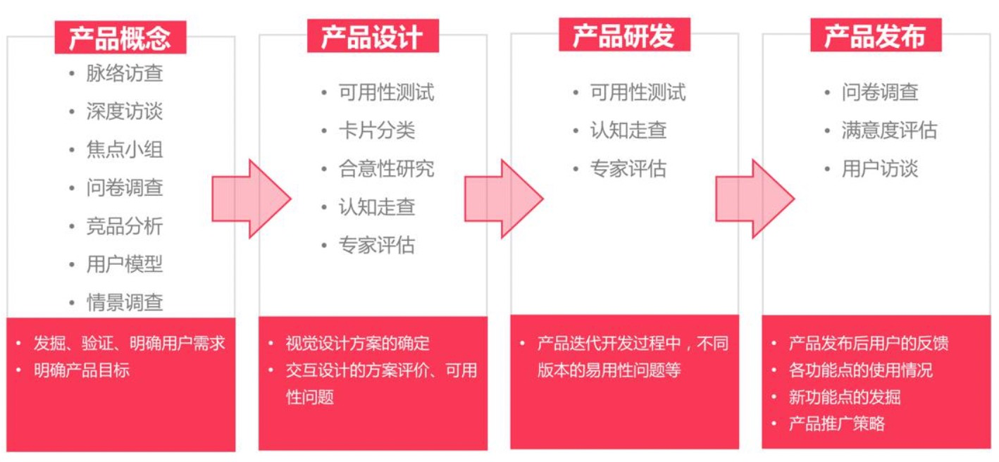 简单来说,对于新产品,用户研究主要用于明确需求点,帮助设计师选定产品的设计方向;对于已发布的产品,
