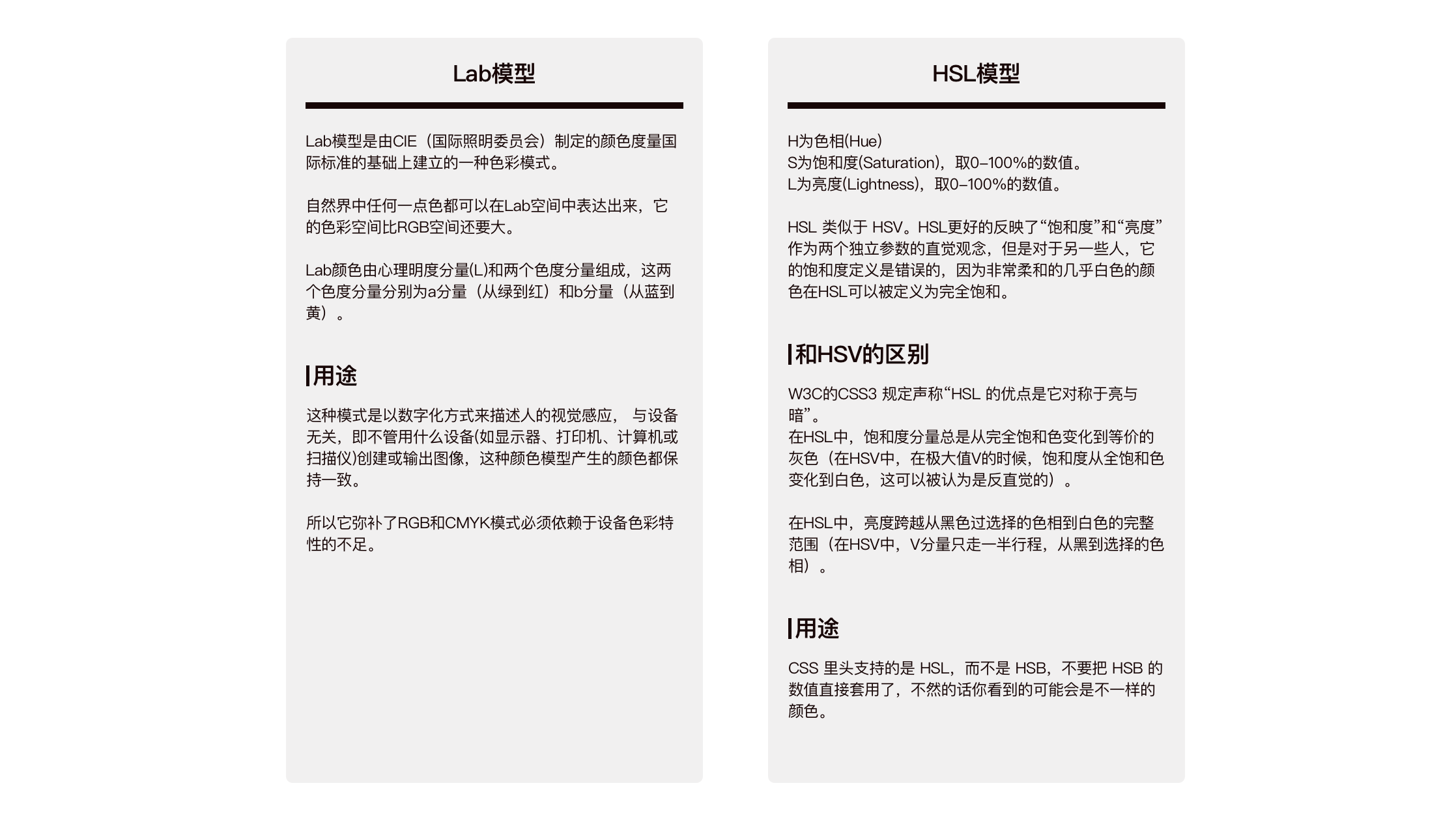 在做数字设计(非平面印刷)时,设计师需要关注的是RGB颜色而非色彩空间。因为在HTML代码中设置颜色的时候,只能用到RGB色,即浏览器将接管色彩空间的管理。