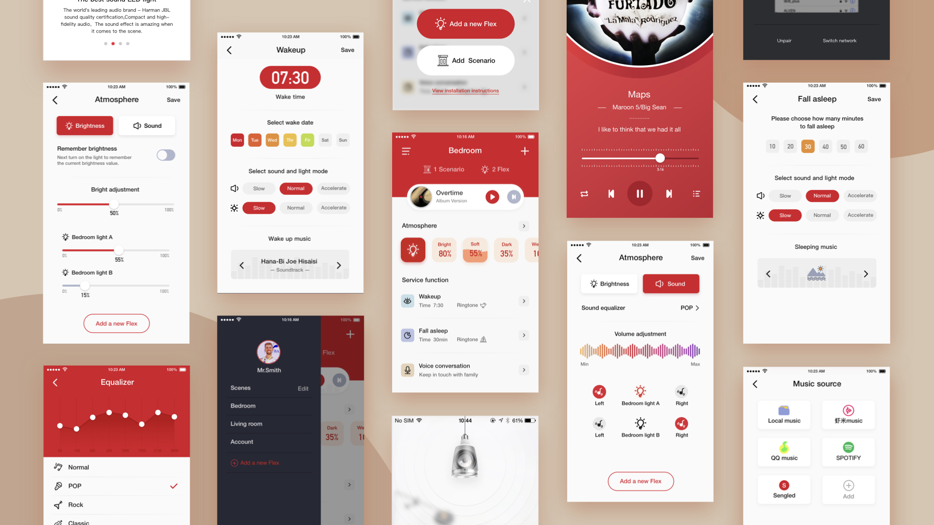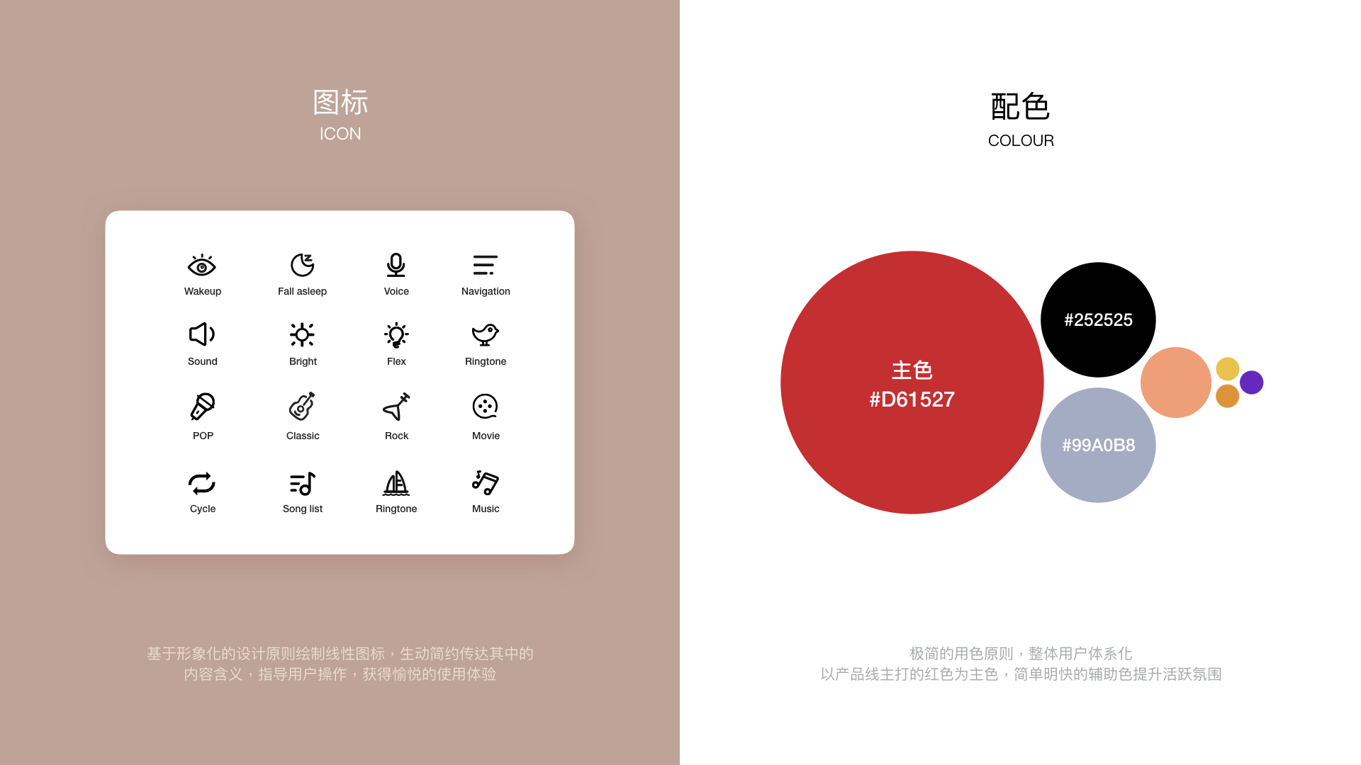 仍然以产品色红色为主色,不是随意创新,是有依据的创新,辅助色也以暖色系为主,体现实际生活场景中家庭的温馨感觉,也增加了一些娱乐氛围,突出了产品特色。
