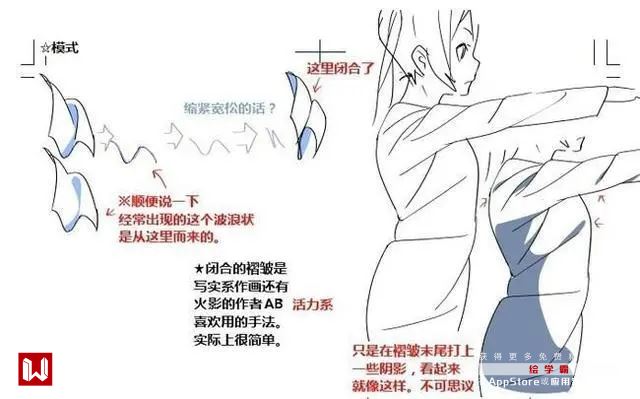 闭合的褶皱是写实系作画还有火影的作者AB喜欢用的手法。实际上很简单。