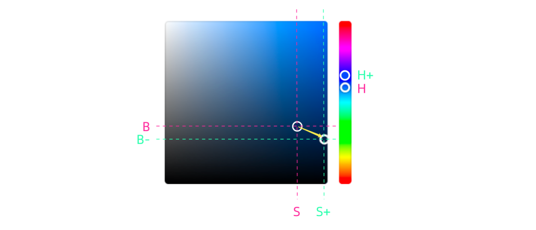 在渐变颜色的取值上,H在原来的数值上可以增加一个增量,S在原来的数值上增加一个增量,B在原来的数值上减少一个增量。这个增量的取值范围为5-15,具体根据最终效果调整。
