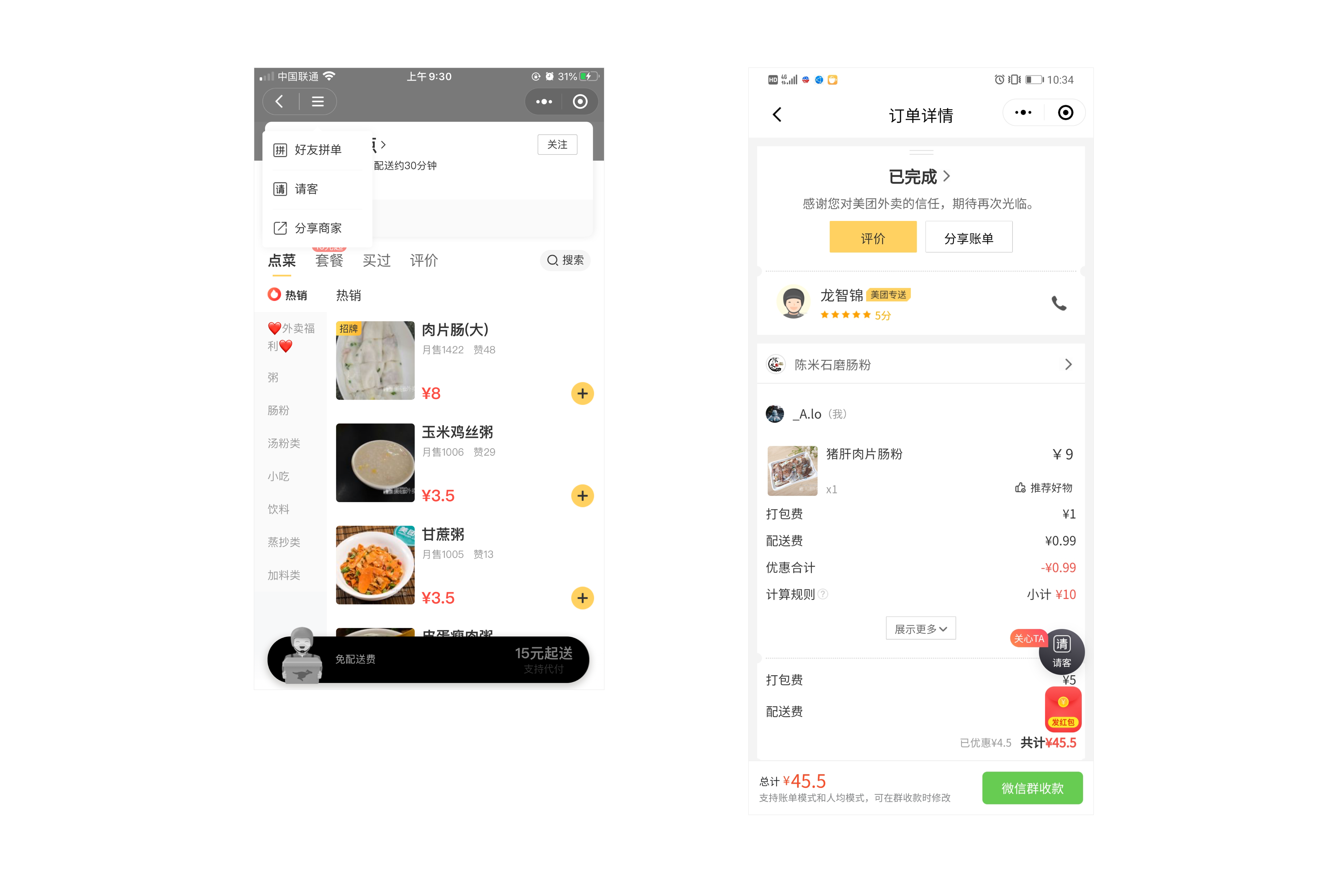 前段时间在点外卖的时候发现了美团新推出了功能:好友拼单+微信收款