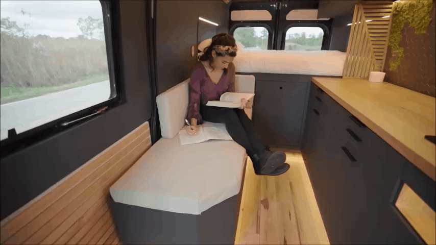 Hymer vision wenture的露营车,采用了3D打印的车身和拱门设计,为我们提供了工作和娱乐不同的生活空间。