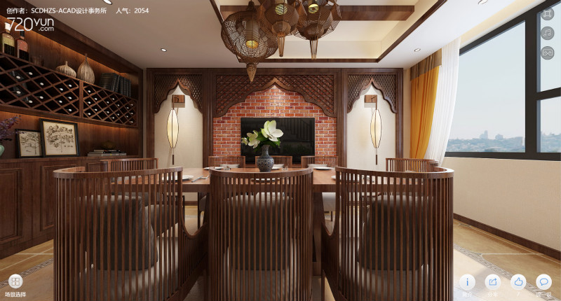 餐厅、吧台设计:崇尚自然,是东南亚风格一个比较突出的特征,餐厅的用具比如餐厅的餐桌、椅,以及碗筷等,采用实木为原材料,以褐色的柚木为主餐厅的在这里。设计师把餐桌椅、灯具、墙体都是以优质的木质打造,而且木质给以一种安全舒适的感觉。