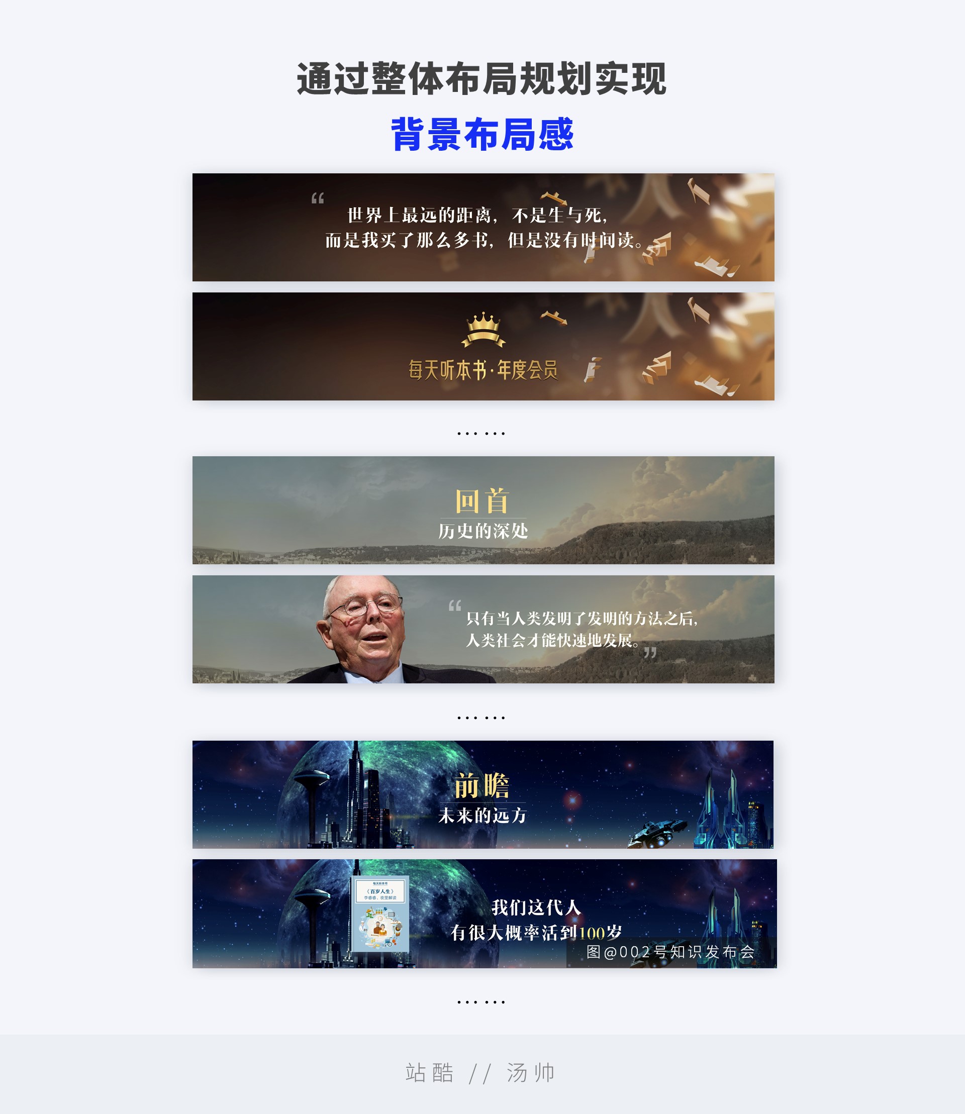 • 反之每一页不同性质的背景,要利用相同的元素作为贯穿做统一化处理,实现最终的统一,这时候所要求的难度是最高的。