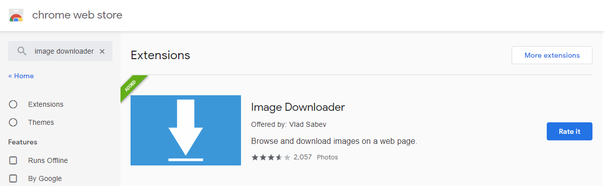 这个插件的名字叫“Image Downloader”。无法登陆Chrome web store下载插件的同学,我会在文章的最后提供下载链接。