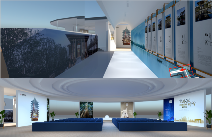长廊尽头,以北大博雅塔为形,以现代城市建筑为核,古今融合彰显北大资源精英气质