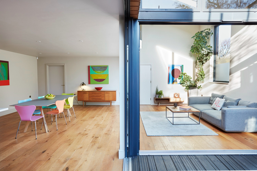 该计划创造了一个有趣的类型,并结合一种生活连接到外部庭院的敞开空间设计。在四层高的维多利亚式房屋林立的街道后面
