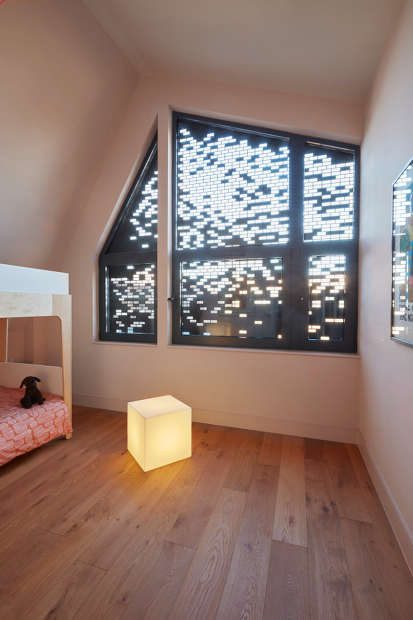 内部,主房布置在庭院周围,设有双高敞开式起居室、家庭厨房和就餐区。底层还设有书房、公用室和外部商店。橡木楼梯上升到一楼,那里有四间卧室,家庭浴室和套房,坐落在几何图形的屋檐下。