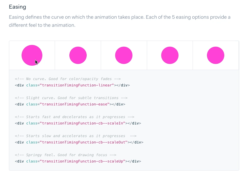 又或者是像 Marvelapp 的设计系统,直观地展示全部缓动效果,然后给出 Token 来引用👇。