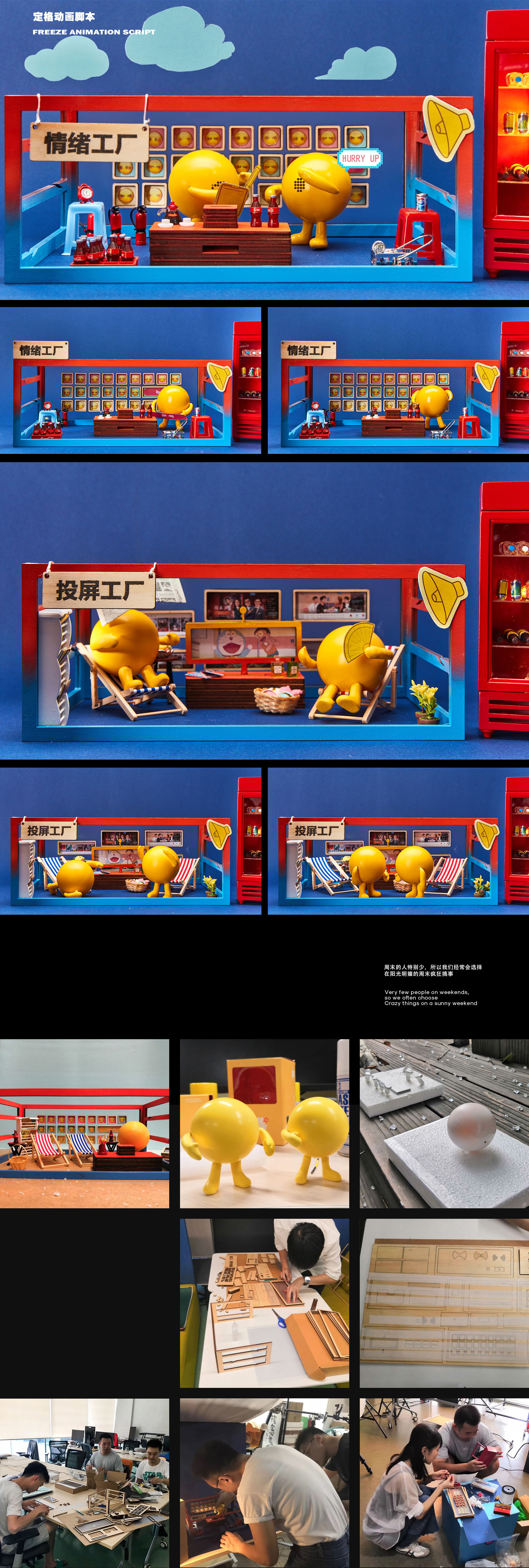 2.由于悬疑期不能直接曝光产品形态,只能暗示产品的功能;我们将IN糖的四个能力制作成了一个完整定格短片进行描绘,将情绪、人格化这个概念提取、放大延展出一条核心故事线,每一个卖点都进行了独立内容包装。每只短片都详细的描述了宠物居民如何工作的情景。比如情绪居民收到指令替换表情,信息居民收到指令更换表情等等。用户在未知产品形态的前提下就可以趣味猜测产品外观和功能,大大提升了新品搜索热度。(投屏功能暂无上线)