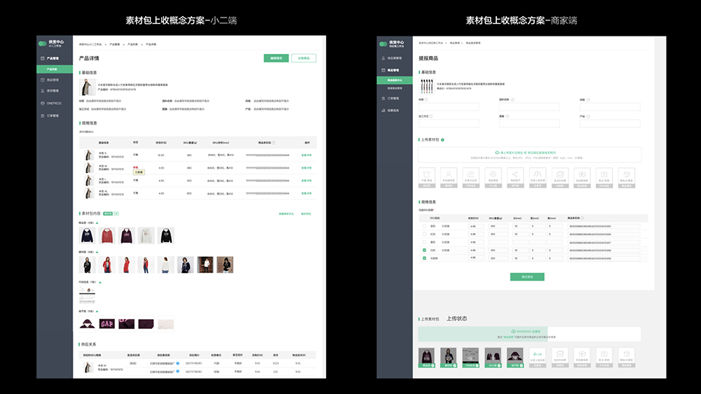 目前大多数的电商商品特别是服装类的商品都有素材包以便于商品进行各个渠道的分销,我们需要做的就是让供应商更快捷,意愿度更高的在商品提报到平台的过程中把素材包一并提交上来,并且素材包的内容可以符合我们的预期。