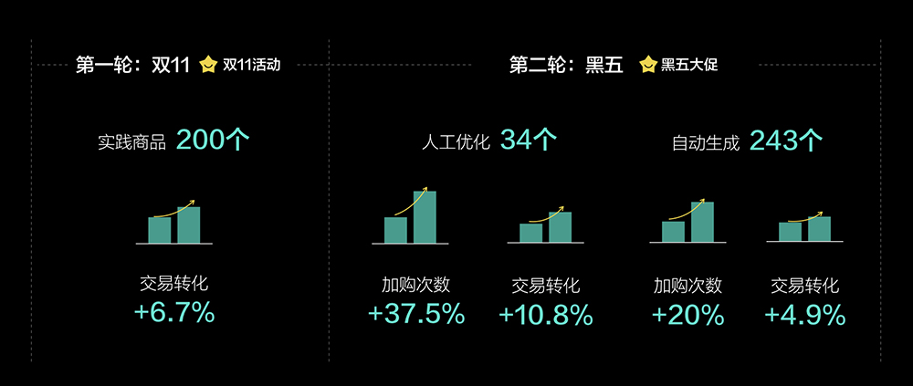 为了让整个项目能够快速的得到价值论证,我们采用了同步迭代的方法以半自动半人工的形式,先行与技术在去年11月、12月完成了双十一和黑五大促两轮活动的测试。