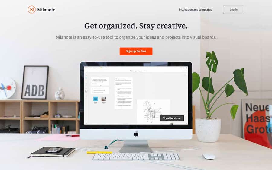 上面的Milanote在网站主页上就做得很好,在主界面有一个电脑屏幕显示正在使用的应用程序。无论访客是短暂停留还是循环播放,这个简短的视频都能向网站访客展示如何与这个网站及相关应用程序进行交互。
