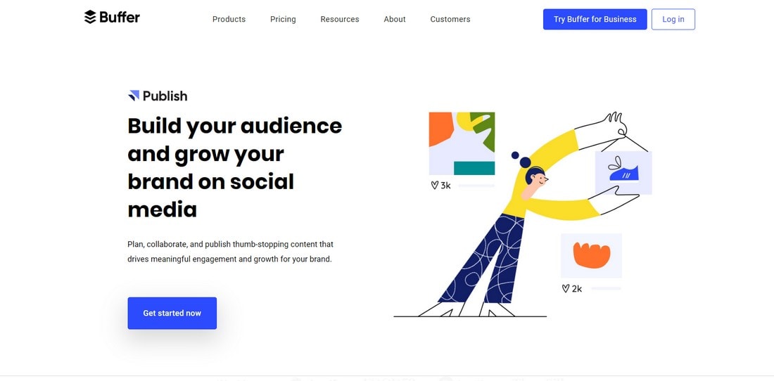 Buffer的网站是使用极简风格内容设计的一个很好的例子。 该网站的上半部分简要说明了该工具的功能。 然后继续解释该应用程序的主要功能。
