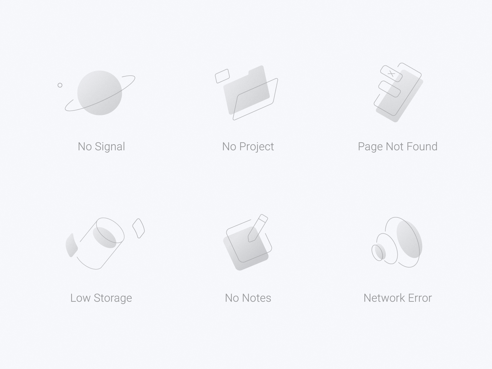 在设计上,略显老旧不耐看,这也是要重绘空白页的主要原因。而为了让图形更加耐看,我想是否要给它加一些“情感”,希望每一个空白页都能有它的“故事”。甚至是加入动效之类的。