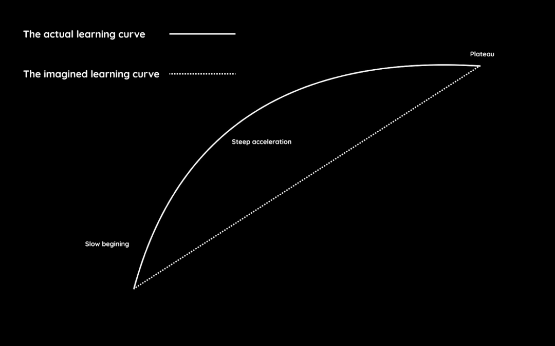 “当你首次学习新事物时,很容易快速进步——至少是稳定的进步,当这种进步停滞了,很显然你已经达到某种难以逾越的技能。因此你会停止向前,在停滞期安定下来,这是大家停进步的主要原因。”