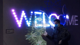当其中一个灯感应到我们手挥舞或者轻触的时候,这款企业logo感应灯会被一个一个点亮,最终呈现出企业logo字的效果。当然除了文字也可以是其他内容,可定制。
