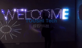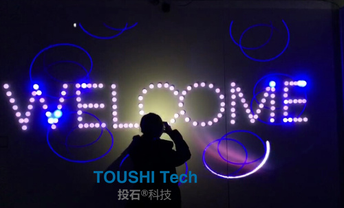 投石科技浪漫装置感应花火、泡泡感应灯、企业logo感应灯互动装置