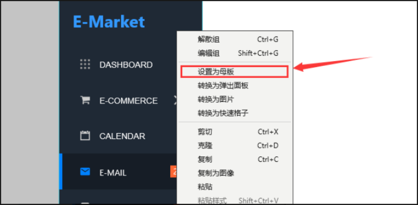 ② 右键选中组件,在弹出菜单中选择“设置为母版”即可添加一个母版组件;