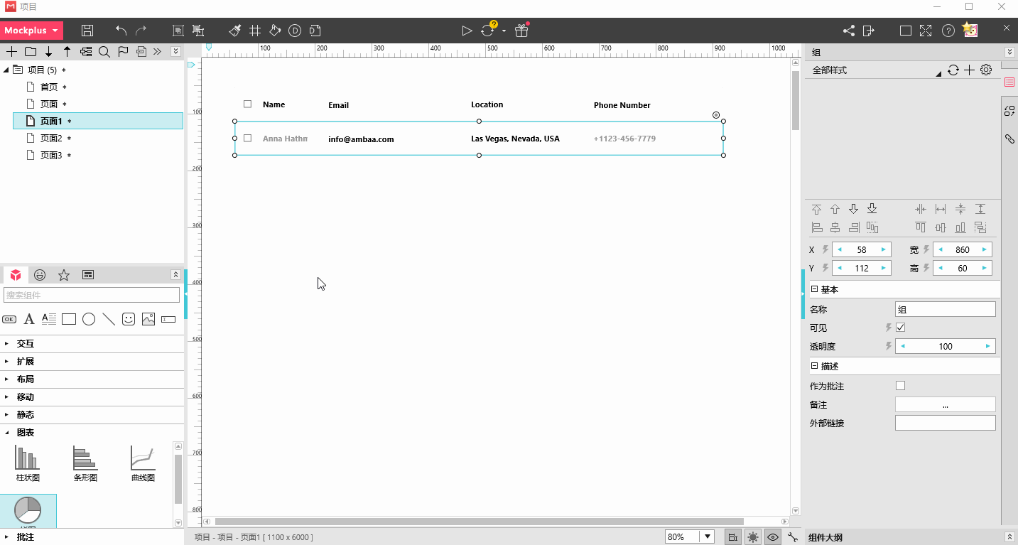 ① 首先,我们需要使用矩形、单行文字、图标等组件,完成单条信息的设计;