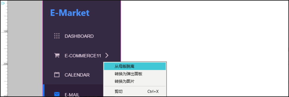 ⑤ 如果需要单独编辑某个页面的组件,在该页面选中该组件,右键选择“从母版脱离”,即可恢复为普通组件。