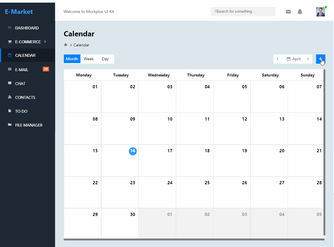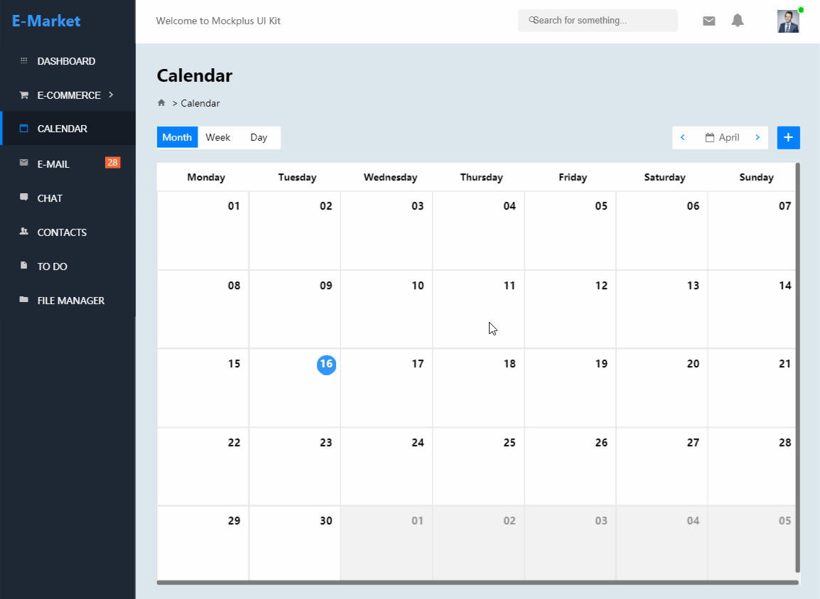 电商管理系统E-Market属于中高保真原型,包含登录注册、数据统计、信息管理、邮件、聊天、任务管理等19个重要页面,每个页面都具备必要的交互设计,较好地呈现了电管理系统的基础功能。