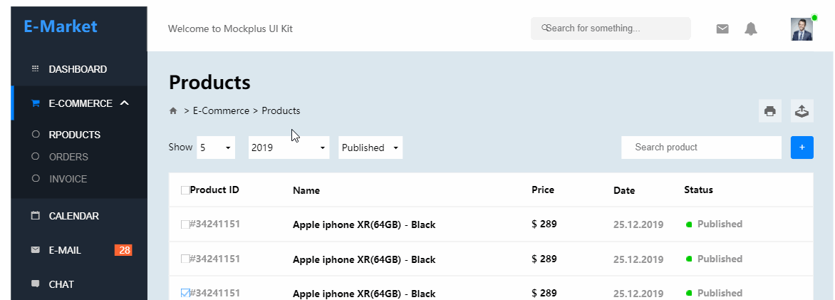 在这款电商管理系统原型中,还使用了许多Mockplus的封装组件来呈现电商管理系统的各项功能,如: