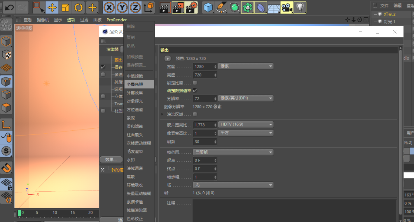 7.选择上方渲染设置,在下面效果里面选择全局光照。
