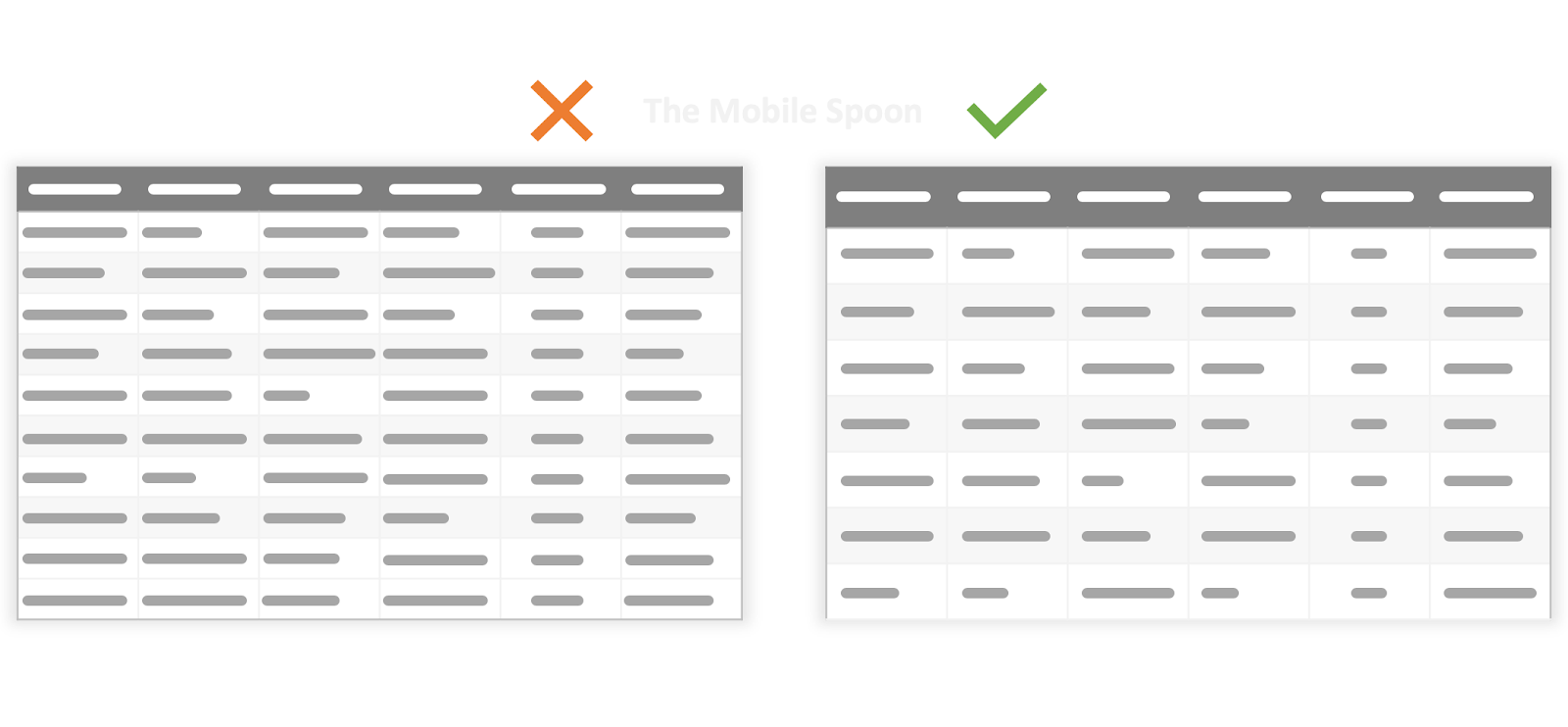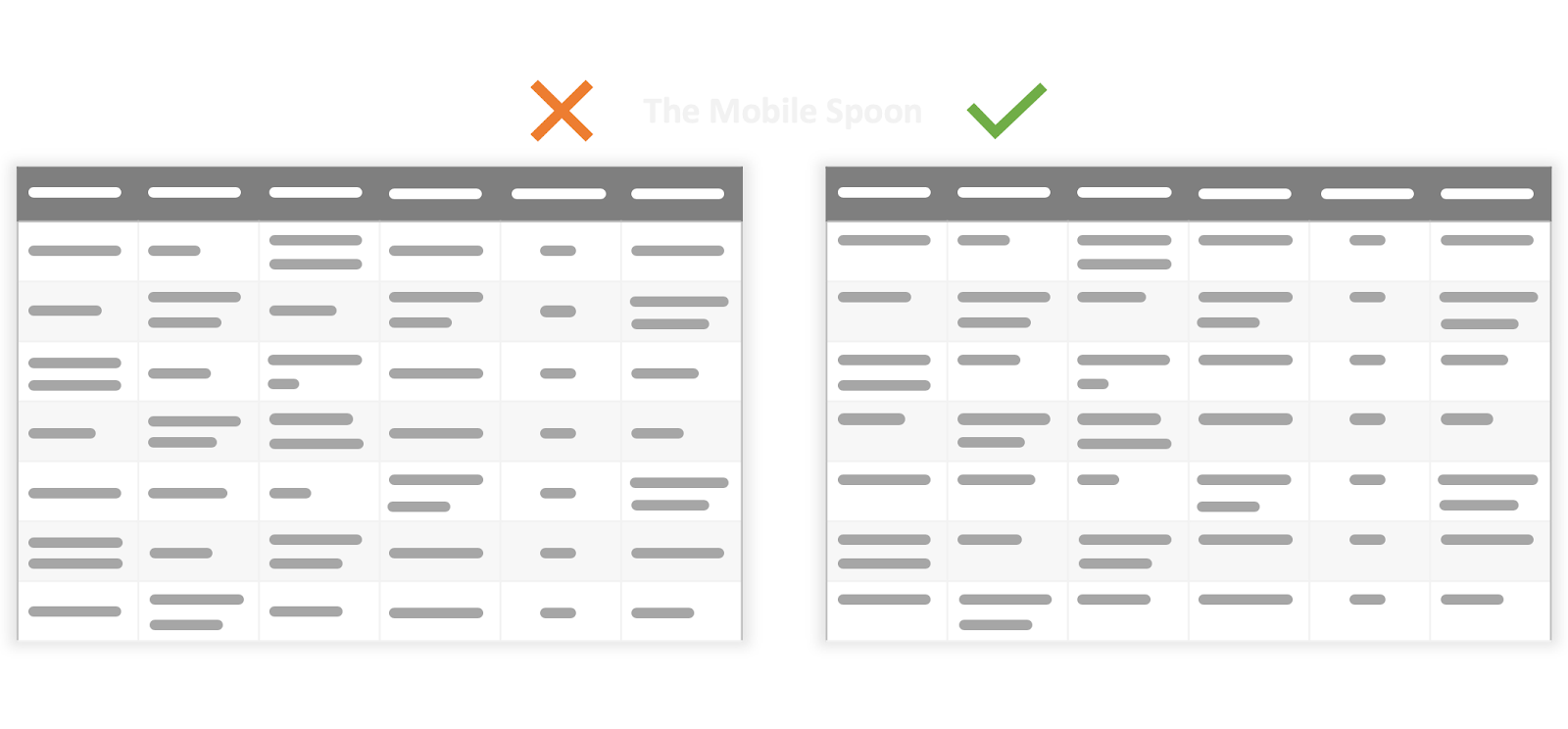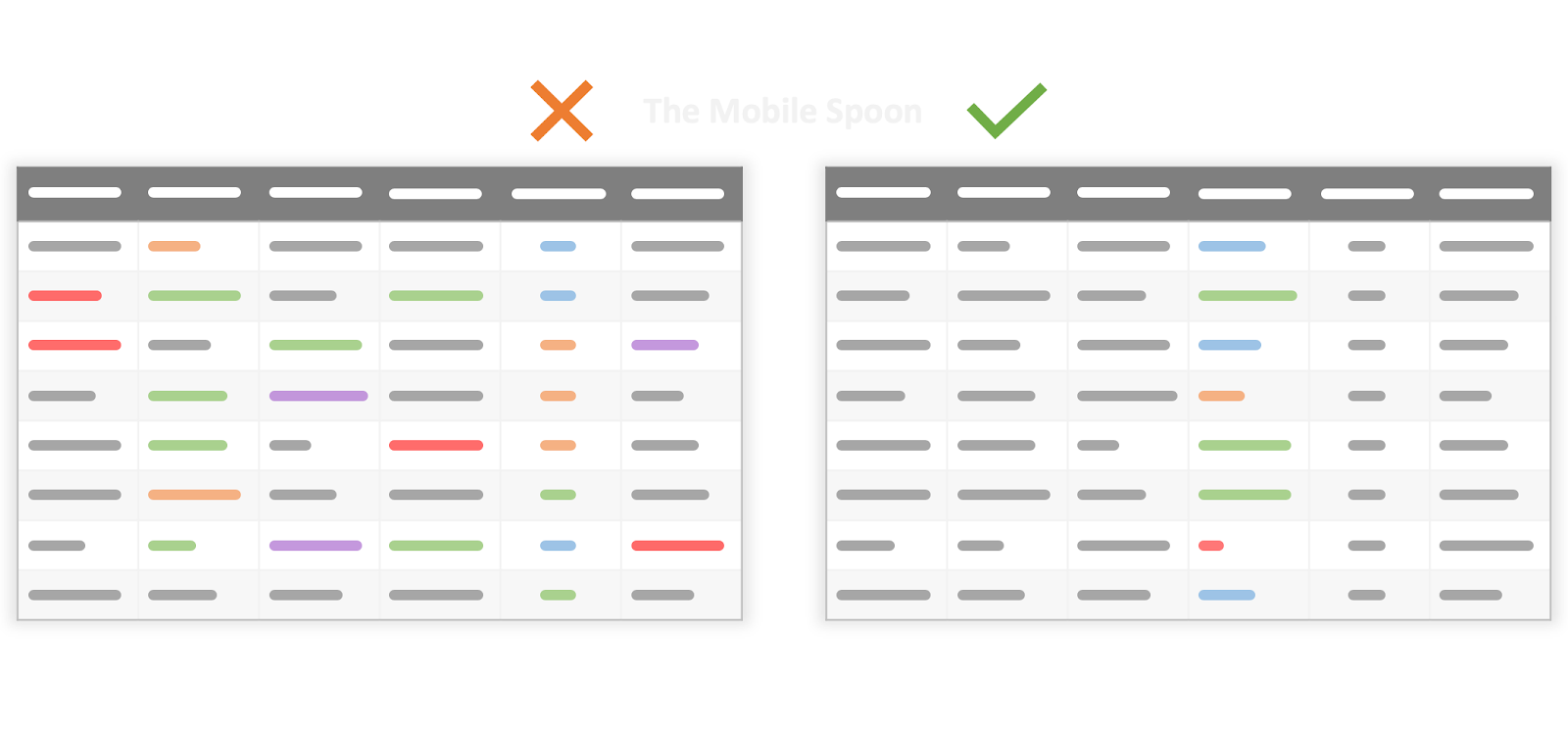 表格和网格是体现结构化信息的,但是,当表格的列宽、行高不同时,就会变得混乱,信息也就会变得没有体系。