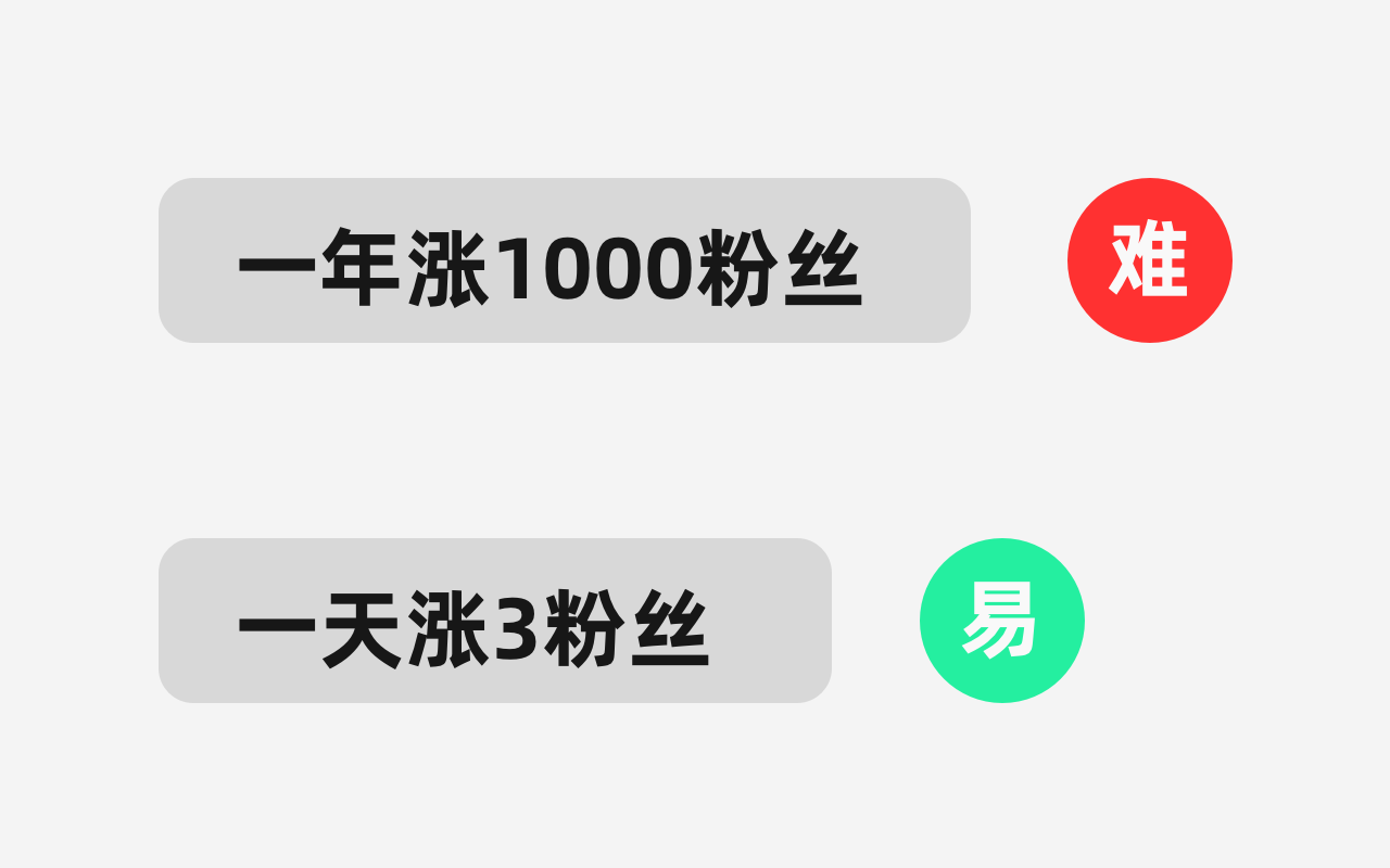 导致上面结果的原因就是因为目标颗粒度太大,我们需要将其拆分变小,比如一年拆成12个月,每个月再拆成30天,那分摊下来就是每天涨3个粉丝,你品一下,还难吗?